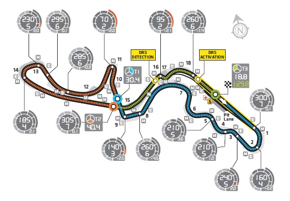 ► Una sola zona di DRS a Suzuka, sul rettilineo di partenza/arrivo. Il detection point è 50m prima della curva 16 con l’activation point prima della linea di controllo.