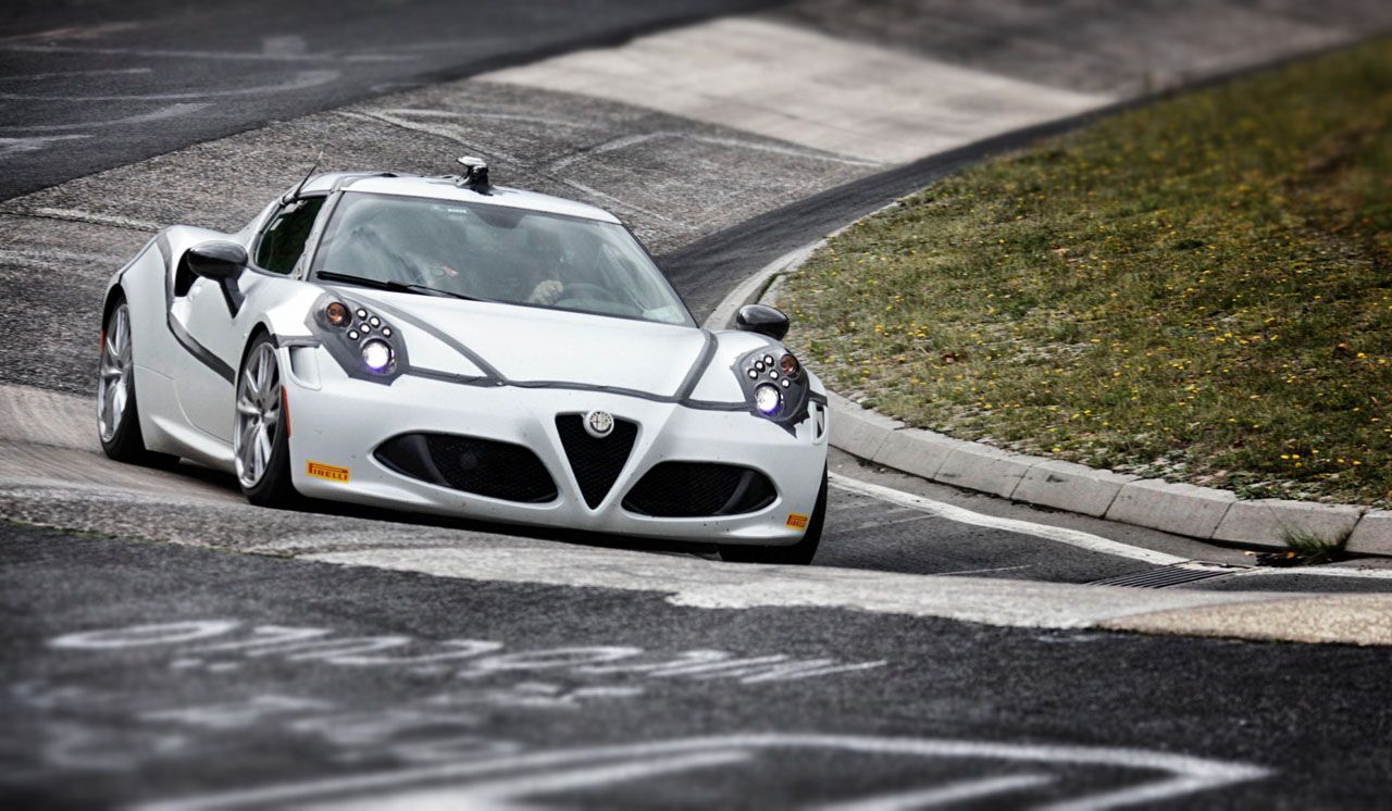 Da alcuni anni utilizzato dalle Case di tutto il mondo come pista di prova, il Nordschleife è caratterizzato da una particolare conformazione che alterna curve lente a curve veloci, rettilinei a saliscendi, rendendolo così un ottimo banco di prova per stabilire la validità di un progetto. Insomma l’inferno verde si è dimostrato il luogo ideale per saggiare le qualità prestazionali dell’Alfa Romeo 4C, una vera driving machine senza compromessi che dà il meglio di sé proprio in pista, dove velocità, spazi di frenata ridotti e accelerazioni trasversali sono fondamentali per ottenere tempi sul giro di prim’ordine: da 0 a 100 km/h in soli 4,5 secondi netti, 258 km/h di velocità massima, punte di decelerazioni nell’ordine di 1,2G e punte di accelerazione laterale superiori a 1,1G. Tutto questo si ottiene grazie anche a una distribuzione ottimale dei pesi – il 40% sull’asse anteriore, il 60% su quello posteriore – e a un rapporto peso/potenza inferiore a 4 kg/CV, valori da vera supercar.