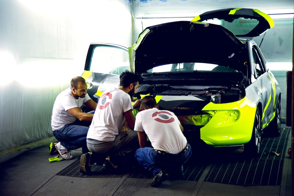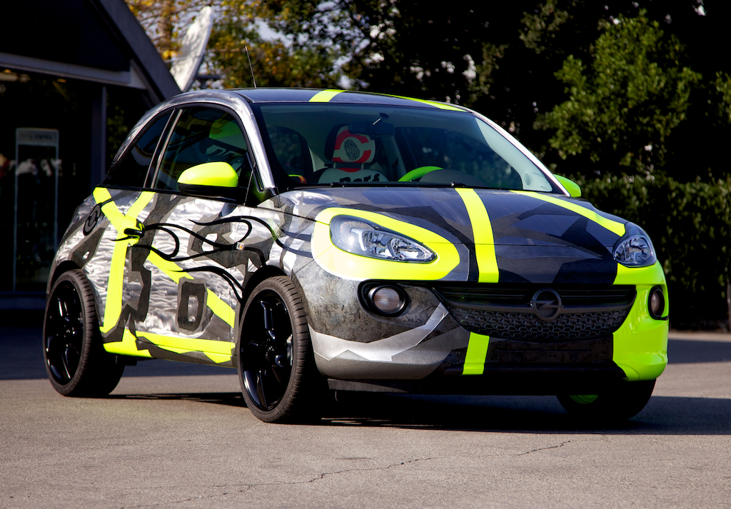 “Personalizzabile dalla testa alle ruote”, Opel Adam ha dunque sfidato l’energia creativa di Valentino Rossi e di Aldo Drudi che l’hanno ricreata non solo ispirandosi all’universo grafico del campione – utilizzando quindi tutti i suoi simboli e i suoi segni grafici più noti e a lui più cari, dal numero 46 ai colori fluo alla scritta “The Doctor” – ma volutamente ribaltandone l’immagine. Nei tre mesi di lavoro che hanno visto all’opera un team di 4 persone guidate da Drudi la livrea è stata ridisegnata completamente, mentre gli interni sono stati rivestiti con pelle Dainese.