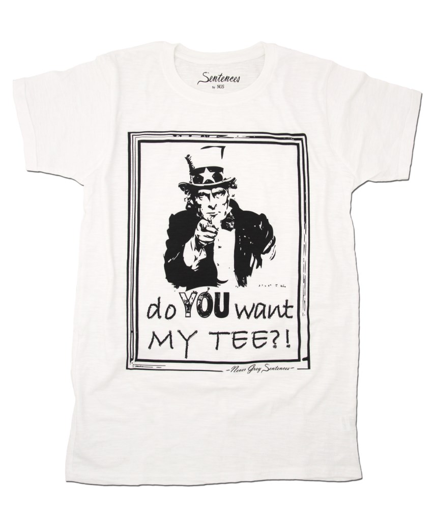 Sentences by NGS è il Brand irreverente, pensato per esprimere la personalità di chi lo indossa, ancor prima che parli. Le grafiche sono pulite e si predilige l’uso di un solo colore proprio per non distogliere l’attenzione dal messaggio stampato. Ogni frase della collezione è firmata con un piccolo serpente simile a una S. Le t-shirt della collezione Sentences by NGS vogliono essere sarcastiche, pungenti e portatrici di messaggi diretti: ad ognuno la scelta d’indossare la frase che più lo rappresenta o che interpreta più semplicemente lo stato d’animo di quel particolare momento.