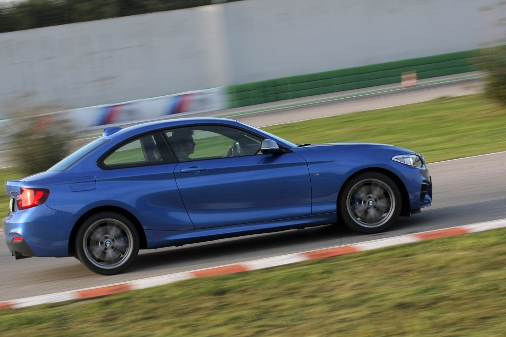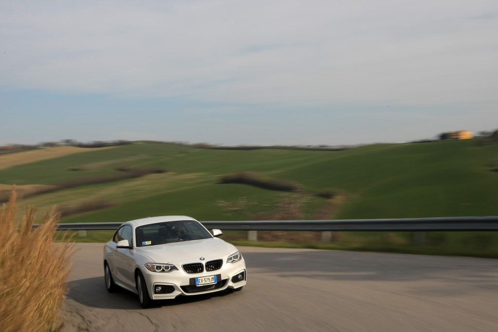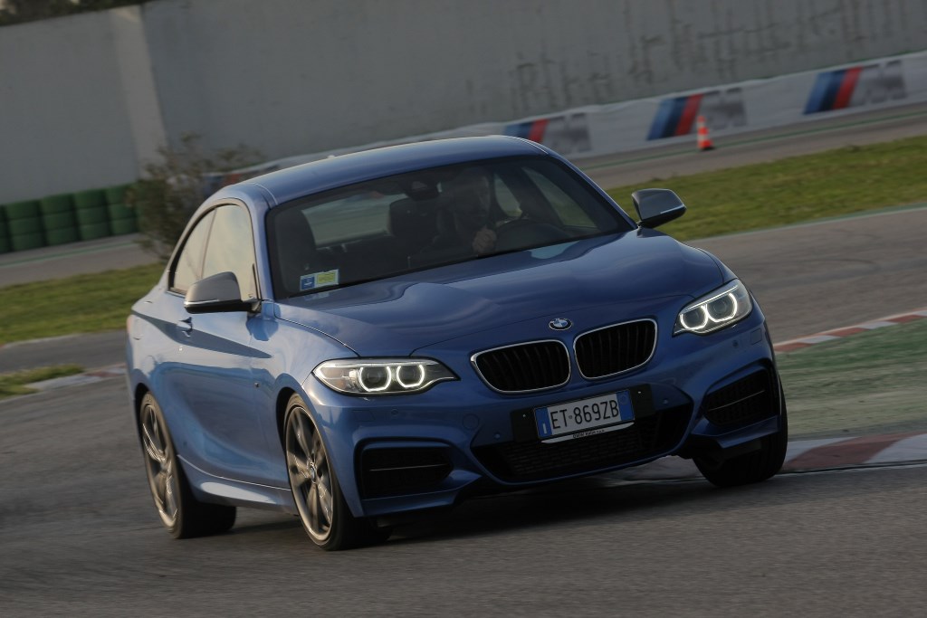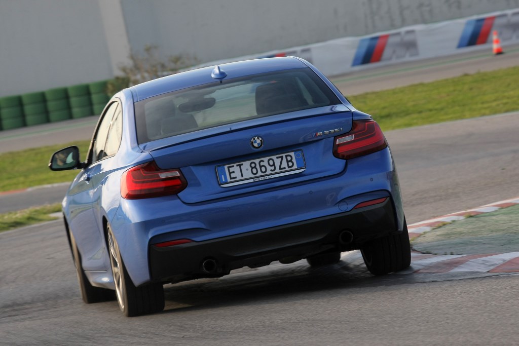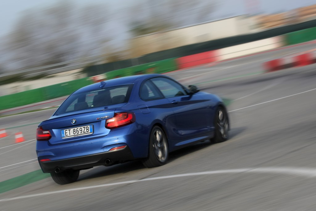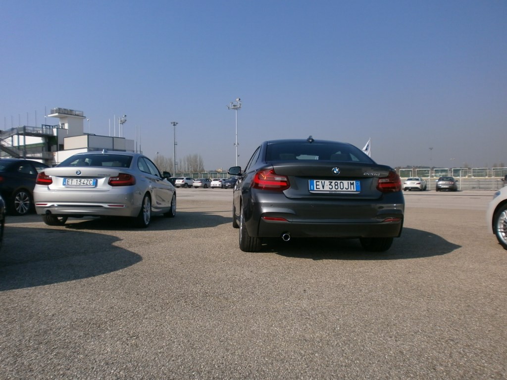 Serie 2, certo BMW, coupé, è ovvio. Anche bella. Fa parte del contratto. Come è naturale trovarsi a Misano Adriatico a far danzare la M235, quella con il motore 6 cilindri in linea (un sogno ante-downsizing) sovralimentato che con la cura M Performance eroga 326 CV contro i 306 dello stesso motore ma nel layout precedente, nella pista handling all’interno circuito intitolato a Marco Simoncelli.