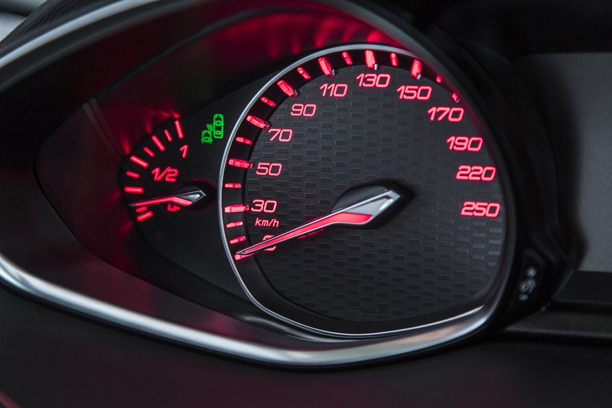 La posizione di guida, fondamentale su un modello sportivo in una automobile, è ideale grazie all’ergonomia del PEUGEOT i-Cockpit. Il conducente può adattarla grazie alla regolazione in altezza e profondità del volante ridotto, specifico con la pelle traforata e la sigla GT. Il quadro strumenti, posizionato nell’asse visivo per non distogliere lo sguardo dalla strada, è caratterizzato da uno sfondo nuovo con un motivo a scacchi (all’inserimento del contatto, accoglie il guidatore con un messaggio di benvenuto GT) e, coerentemente, il grande touchscreen ha un nuovo tema con prevalenza di colori rosso e nero, battezzato Redline.