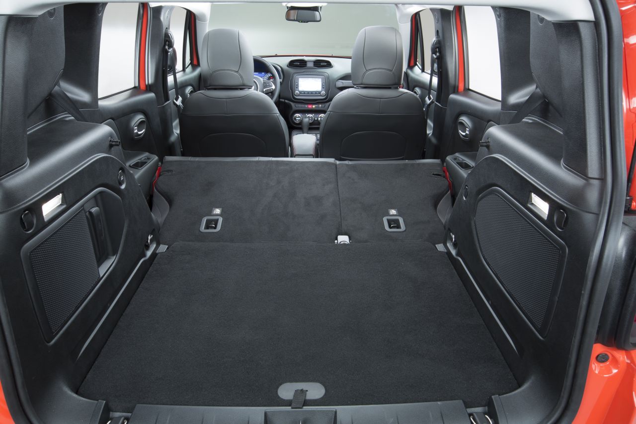 Gli interni si distinguono per il particolare linguaggio stilistico – denominato “Tek-Tonic” dai designer Jeep – che coniuga forme morbide e piacevoli al tatto con dettagli robusti e funzionali. Alle superfici principali, come ad esempio il rivestimento con materiali morbidi del quadro strumenti integrato, si sovrappongono elementi funzionali dal design audace, come la maniglia di sostegno del passeggero. Indispensabile per le avventure off-road, questa robusta maniglia è stata presa in prestito dalla sorella maggiore, la leggendaria Jeep Wrangler. Per garantire il giusto spazio a passeggeri ed equipaggiamento, la Renegade offre una compattezza interna efficiente e flessibile che include un sedile passeggero anteriore reclinabile in avanti e, a richiesta, un esclusivo pianale di carico removibile, reversibile e regolabile in altezza.