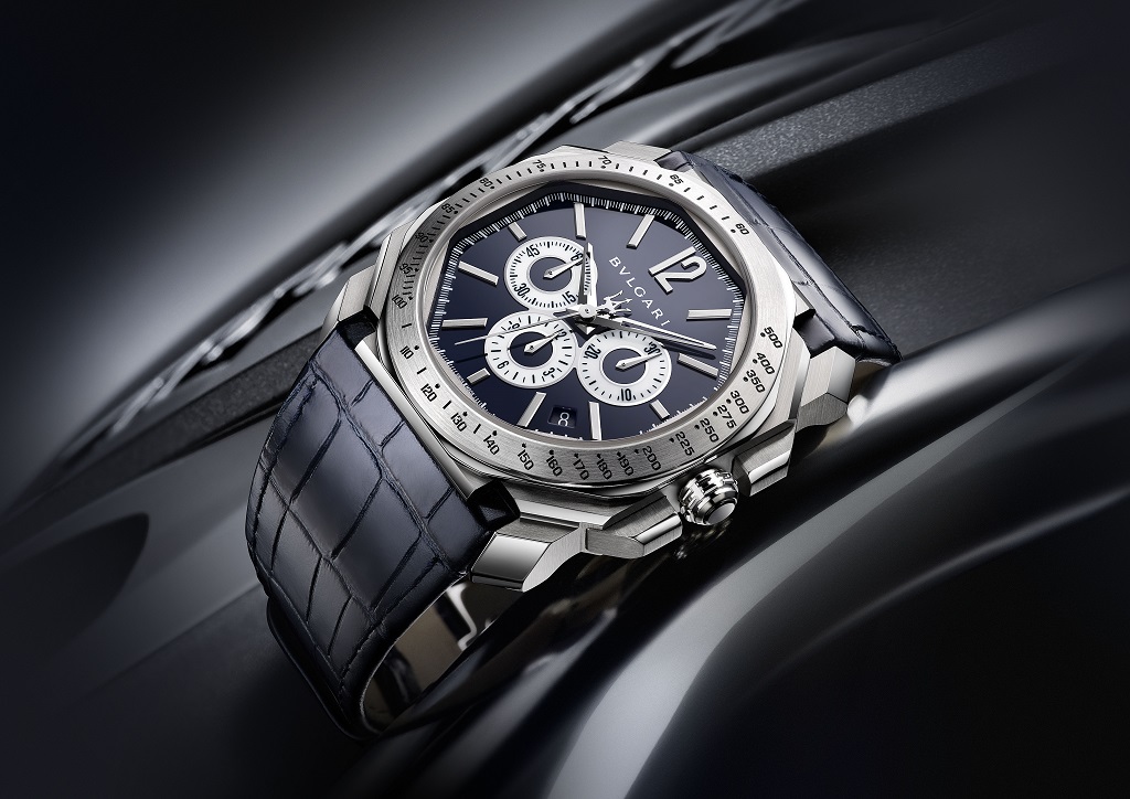 • Cronografo a carica automatica integrato con movimento di manifattura, Calibro BVL 328 Velocissimo, 36.000 alternanze orarie, scappamento in silicio, riserva di marcia di 50 ore: lancette delle ore e dei minuti, lancetta cronografa dei secondi al centro, contatori cronografi di minuti e ore a ore 3 e 6 rispettivamente, contatore dei secondi a ore 9; data tra le 4 e le 5