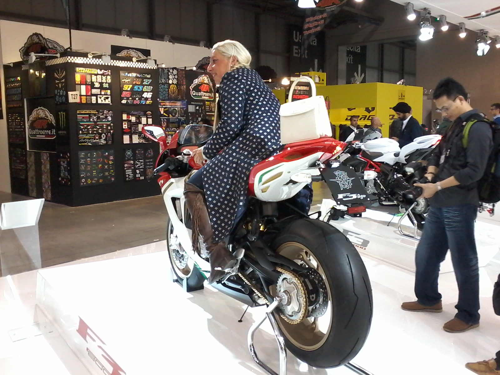 8945_10204977966718561_4578719478401096653_nLa 72° Esposizione Mondiale del Motociclismo si congeda, quindi, con risultati sorprendenti: rispetto allo scorso anno, l’affluenza di pubblico è cresciuta del 14,7%, che significa 628.600 visitatori che hanno varcato l’ingresso di Fiera Milano – Rho. I sei padiglioni e l’area esterna, distribuiti su una superficie di 280.000 metri quadrati lordi, hanno ospitato 1.053 espositori, provenienti da 34 Paesi, 14 gare internazionali, 600 tra piloti e “artisti” delle due ruote.