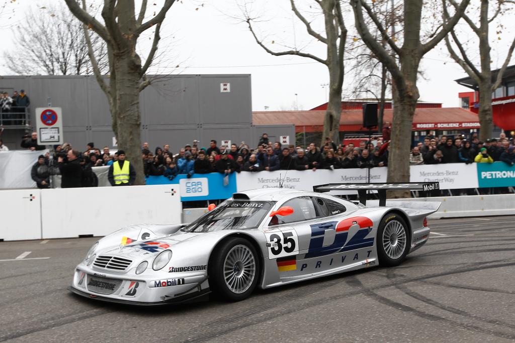 The most spectacular run of the day was dedicated to the three letters SLR. The six SLR vehicles driving on the track around the Mercedes-Benz museum, among them the Uhlenhaut Coupé, are valued at well in excess of 100 million euros. Many VIP guests attended the event, including legendary motor racing greats Hans Herrmann, Stirling Moss and Klaus Ludwig and sports stars like professional golfer Martin Kaymer, head national football coach Joachim Löw and manager of the German national football squad Oliver Bierhoff.