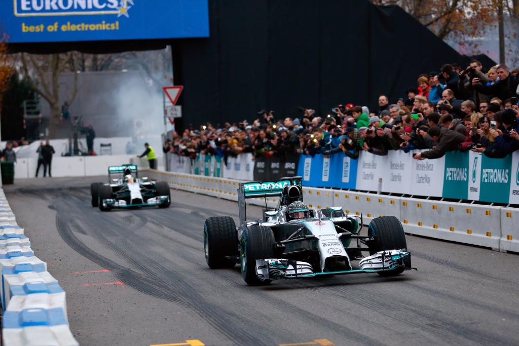 Mercedes-Benz organised a spectacular conclusion to the 2014 sporting year on Saturday, November 29th with Stars & Cars in Stuttgart. 50,000 visitors came to the event based around the Mercedes-Benz museum in Stuttgart to honour Formula 1 World Champion Lewis Hamilton, his team-mate and world championship runner-up Nico Rosberg and Silver Arrows constructors’ champions MERCEDES AMG PETRONAS.