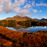 Nelle giornate limpide d’inverno una delle montagne della catena Seven Sisters, l’Errigal, si specchia meravigliosamente nei laghi vicini.