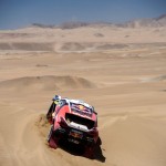 L’energia del debuttante Cyril Despres si è evidenziata sul percorso Antofagasta-Iquique. La sua iniziazione alla guida delle quattro ruote è passata per le piste sassose e nelle dune di sabbia. Assistito dall’esperienza del suo copilota Gilles Picard, ha potuto mantenere alto il proprio ritmo e concludere 32esimo la tappa (risalendo alla 45esima posizione in classifica generale). « Ho passato le ultime due notti in speciale – ricorda Cyril – sono uscito dalle dune di Copiapo verso mezzanotte e ieri sono tornato al bivacco molto tardi dopo una speciale complicata, Disputare una Dakar al volante di un’auto è meno impegnativo sul piano fisico rispetto alla moto ma richiede una grande concentrazione mentale. Adesso la SS7, l’ho fatta molte volte in moto e sono impaziente di vedere come gli