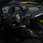 Per una manovrabilità al top, l’Alfa Romeo 4C Spider è dotata del Pack Track che comprende ammortizzatori ad alte prestazioni con barre antirollio più lunghe, ruote forgiate in alluminio più grandi e dal profilo sfalsato 18″ x 7″ (anteriore) e 19″ x 8,5″ (posteriore) con pneumatici Pirelli P-Zero “AR Racing” su richiesta, volante sportivo con inserti in microfibra tagliato nella parte inferiore, specchietti esterni e supporto quadro strumenti in fibra di carbonio, oltre ai sedili prestazionali su richiesta in pelle nera con inserti in microfibra e finiture di pregio rosse o gialle.