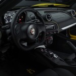 In aggiunta alle combinazioni cromatiche esterne, la 4C Spider offre diverse combinazioni per gli interni, inclusi due pozioni per la scelta dei materiali: pelle nera con cuciture rosse, pelle rossa con cuciture rosse, la nuova pelle nera con cuciture gialle, e in esclusiva per il Pack Track, sedili da corsa in pelle nera con inserti in microfibra e cuciture rosse o gialle.