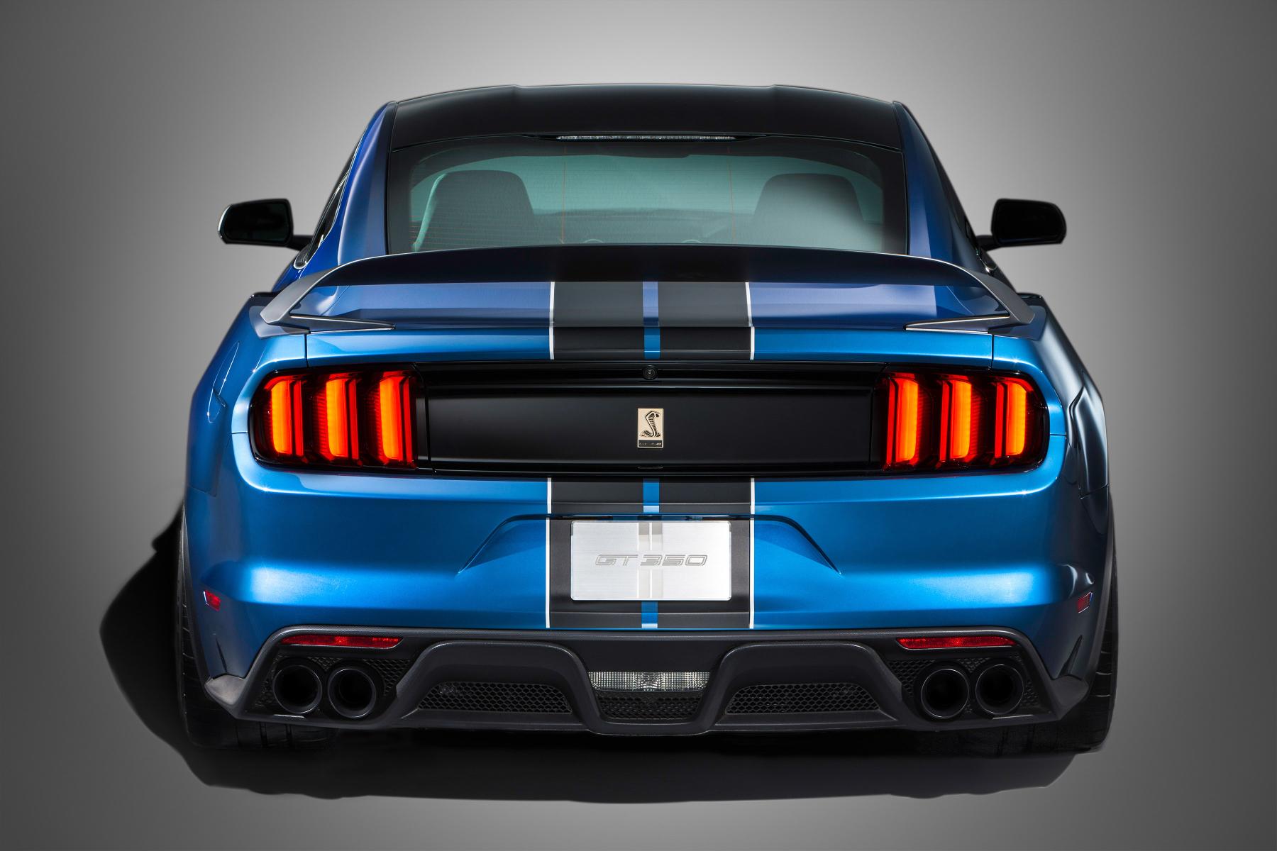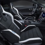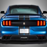 La versione R della Shelby GT350, che sarà in vendita nel 2016, è riservata esclusivamente alla pista e si distingue per un’attenta riduzione del peso, ottenuta eliminando elementi come il climatizzatore, l’impianto audio e i sedili posteriori. E’ dotata di cerchi da 19 pollici in fibra di carbonio e di una serie di elementi aerodinamici ad alta efficienza, come lo splitter anteriore maggiorato e lo spoiler posteriore, anche questo realizzato in fibra di carbonio.