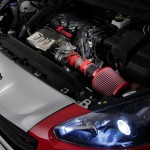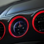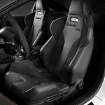 La plancia è rivestita interamente Alcantara con impunture rosse, lo stesso rosso che fa da contorno al quadro strumenti. Ulteriore richiamo alla sua vocazione sportiva, il manometro del turbo che sostituisce, nella consolle centrale, l’orologio analogico di serie sulla RCZ R.