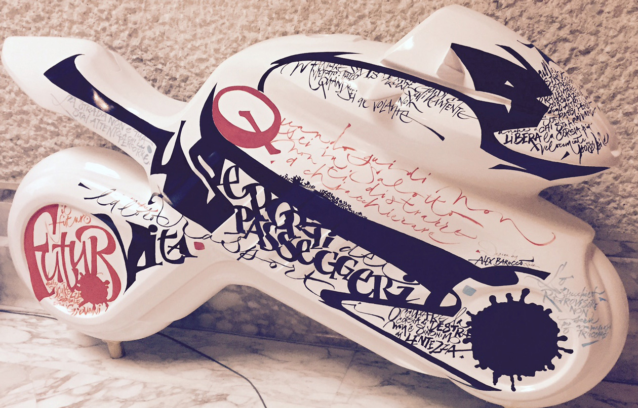 Un esemplare unico, entrato in Vaticano scortato dalla Polizia di Stato, decorato dall’artista e calligrafa novarese Alessandra Barocco con frasi sul tema della sicurezza e la mobilità, destinato a coinvolgere lo stesso