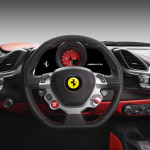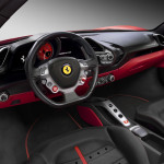 L’integrazione tra i nuovi comandi a satellite, i diffusori aria inclinati e il quadro rafforza l’effetto di un vero e proprio cockpit cucito attorno al pilota creando un’atmosfera di sportività estrema senza sacrificare il comfort. Tipici della tradizione Ferrari, la netta separazione tra plancia e tunnel, il volante multifunzione, il bridge comandi e i sedili avvolgenti. Completamente rivista la grafica e l’interfaccia del sistema infotainment, mentre per la prima volta la chiave ispirata alla forma dei polmoni di aspirazione motore assume la funzione “keyless start”.