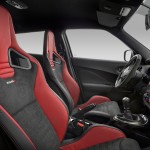 Juke NISMO RS si distingue nettamente grazie alle pinze dei freni rosse e al discreto logo ‘RS’ collocato sul frontale e in coda. A bordo, il logo RS compare nel contagiri, all’interno di un elegante quadro strumenti rivestito in camoscio. Un’accattivante finitura “water print” su manopola/leve del cambio e nella parte centrale della plancia conferisce all’abitacolo il tocco finale.