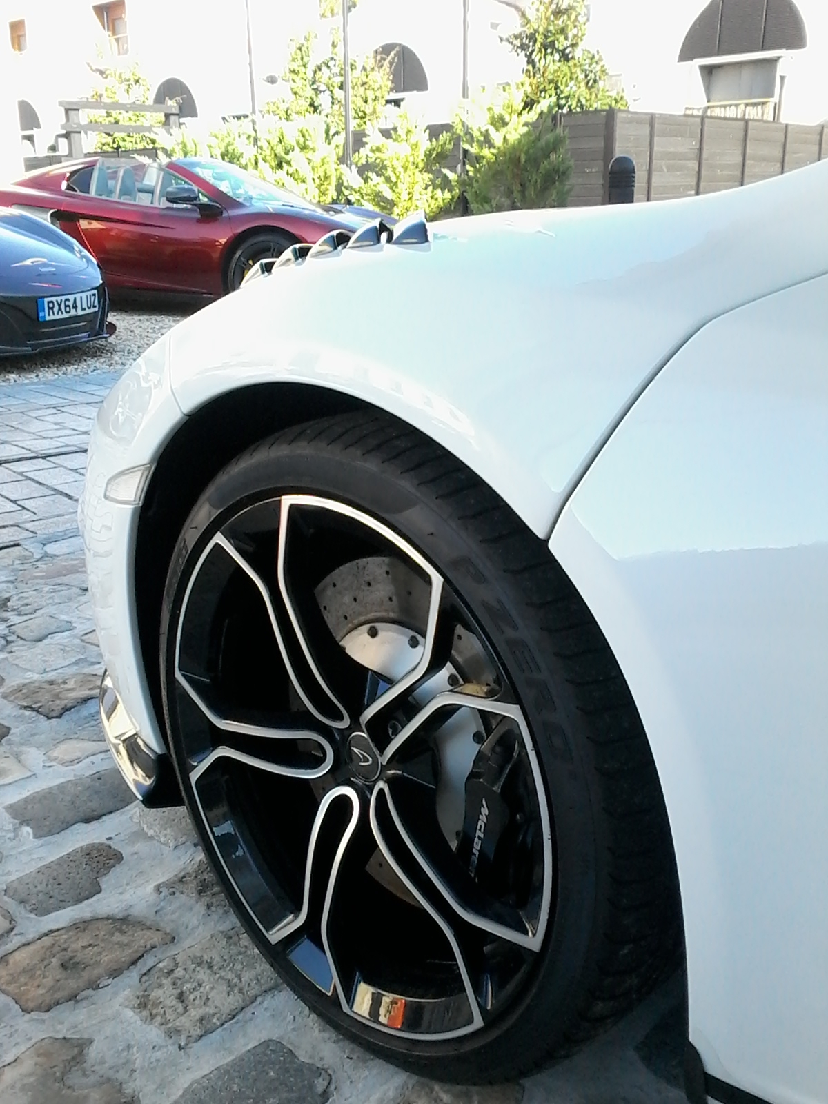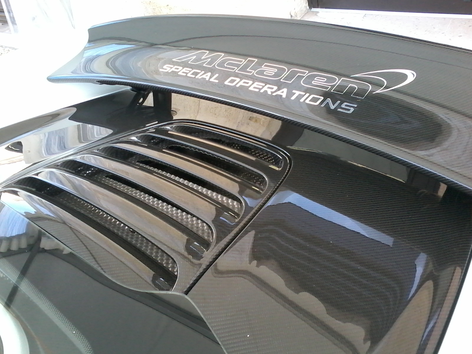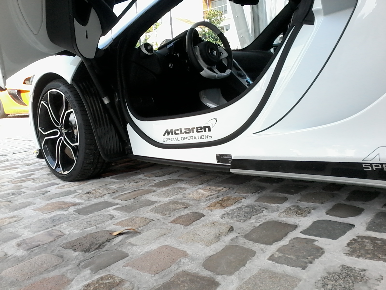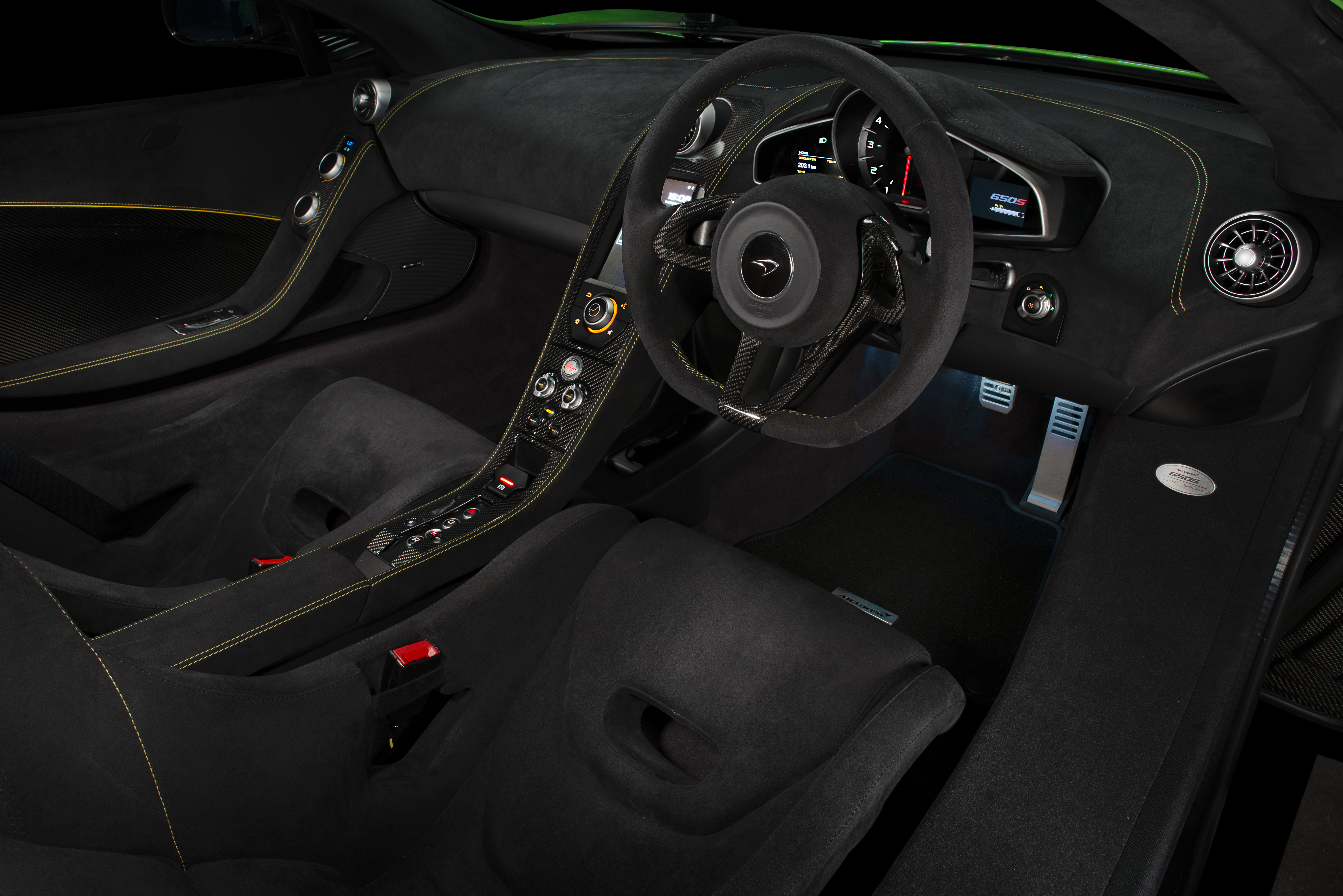 20140922_173807L’interno è… da viverci! L’abitacolo è interamente rivestito di serie in leggero tessuto Alcantara o in pelle, materiali che avvolgono l’intero padiglione, volendo con cuciture a contrasto. I sedili racing a schienale fisso, in carbonio, basati sul leggero design utilizzato per la McLaren P1, offrono un eccellente livello di supporto per gambe e schiena, migliorando il coinvolgimento del guidatore e riducendo il peso complessivo di 15 kg.