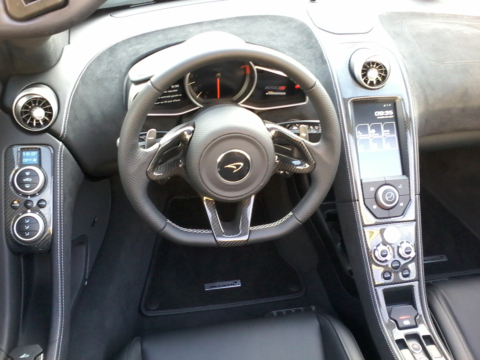 A ulteriore conferma che la 650S nasce per essere guidata sempre, tutto quello che rientra nella voce “entertainment” e che non si trova certo sulla monoposto di Button e Alonso: 20140922_125536navigazione satellitare IRIS, con telefonia Bluetooth, radio digitale DAB nei mercati europei (radio satellitare Sirius in Nord America), tethering wireless, streaming audio e voce di controllo di serie, telecamera di parcheggio posteriore. Tra gli optional, sedili da corsa a schienale fisso in 20140922_173800carbonio, basati sul leggero design utilizzato per la McLaren P1, piantone dello sterzo regolabile per agevolare l’ingresso e l’uscita dalla vettura, uso estensivo di fibra di carbonio nell’abitacolo.