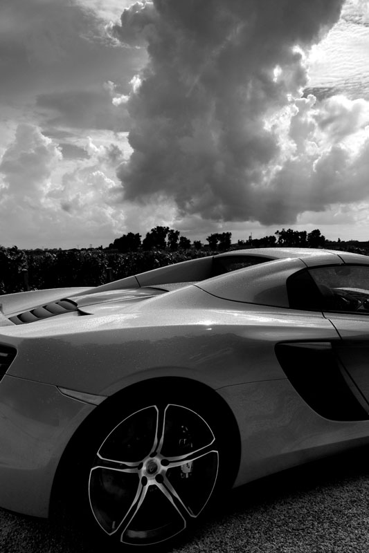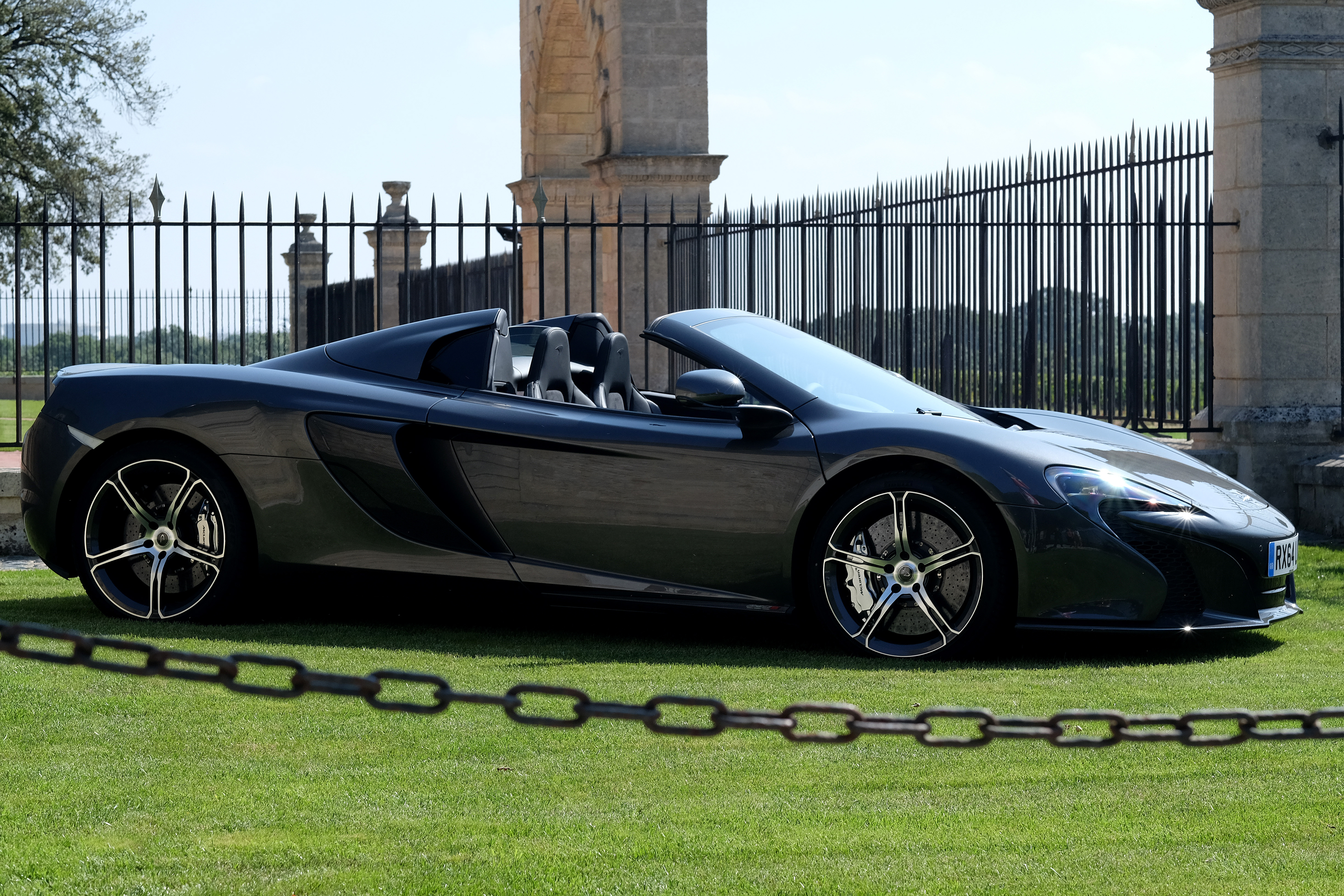 Chateau-Cheval-Blanc-1Un sogno che per noi è diventato realtà quando siamo stati invitati a provarla nella zona di Bordeaux, tra vigneti e chateaux dove nascono vini tra i più pregiati al mondo, in “edizione limitata”, proprio come le creature McLaren. Primo impatto: viene da dire “coupé a tetto fisso o spider con tetto rigido retrattile per me pari sono”, spettacolari ed eleganti, uniche nell’insieme e nei dettagli, se non si viene richiamati all’ordine ci si perde a osservare le linee…