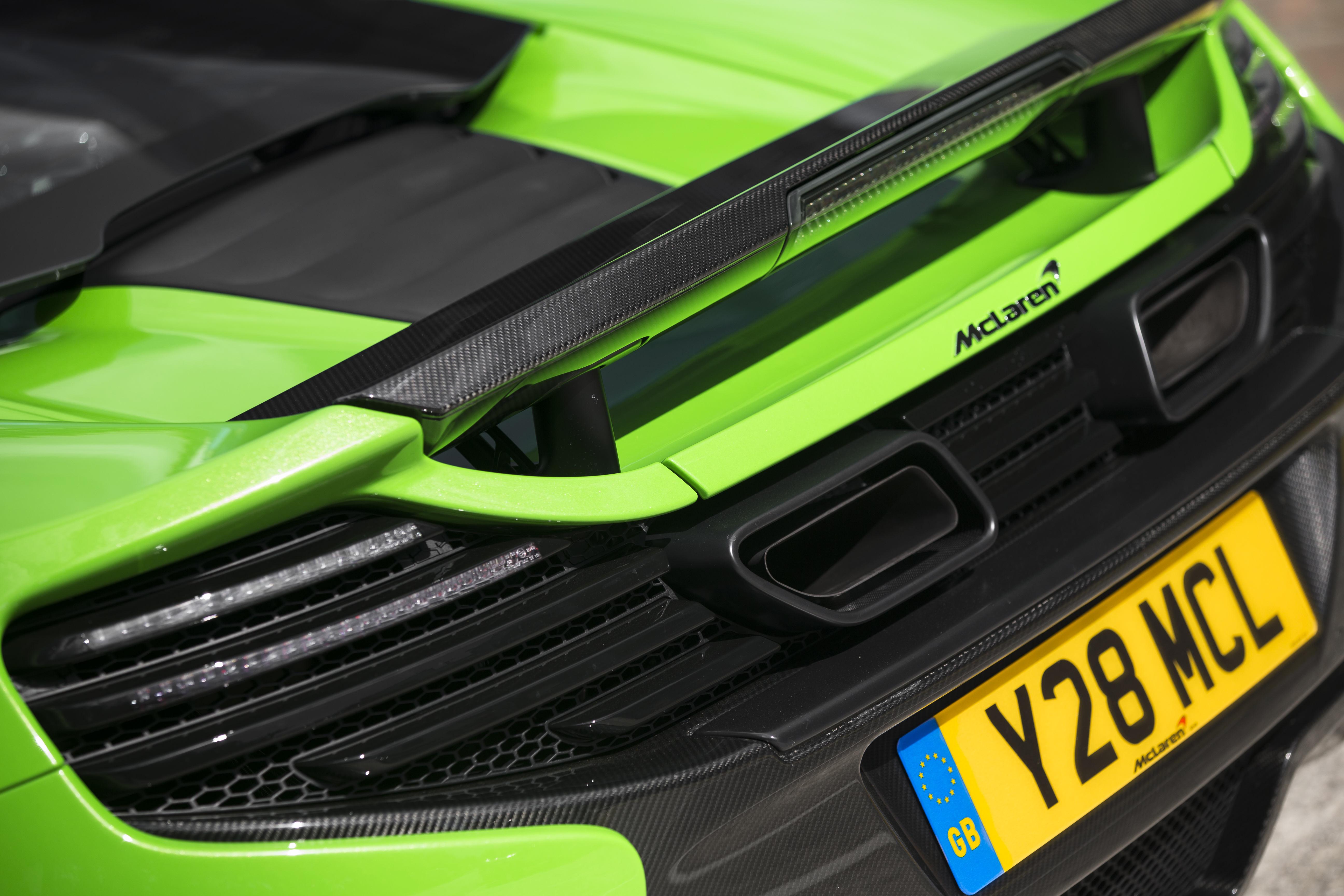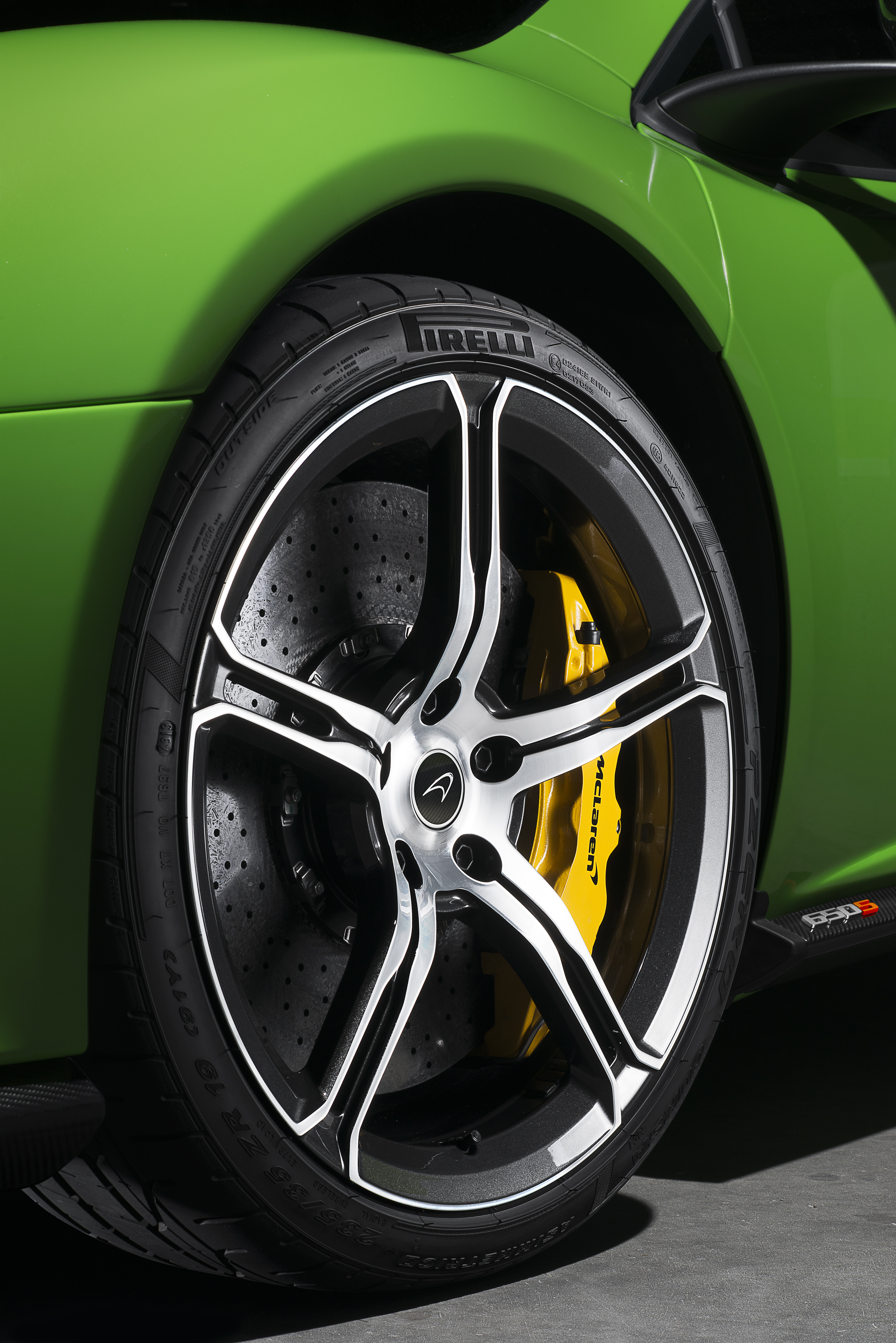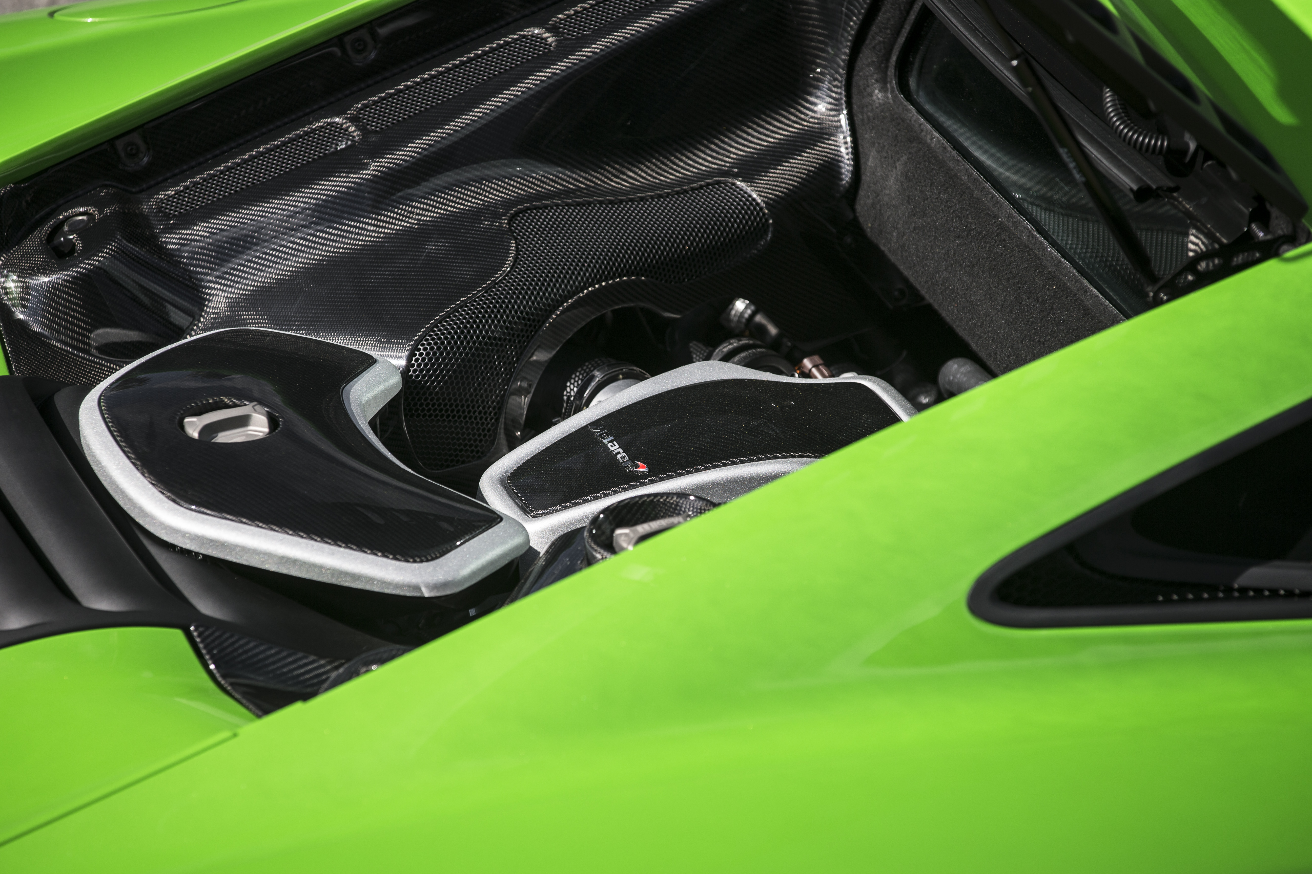 La 650S è la prova che la Formula 1 non è un semplice esercizio di stile: come nel caso della 12C e della P1, tantissimo è ispirato alla F1, a partire dal telaio in fibra di carbonio, solo 75 kg, con l’innovativa scocca MonoCell che 20140922_174051offre vantaggi in termini di peso, rigidità torsionale, durata, sicurezza e qualità, tutte caratteristiche che ottimizzano l’esperienza di guida. Altre tecnologie che si rifanno alla Formula 1 sono le sospensioni a braccio oscillante trasversale, il motore montato centralmente, il Brake Steer per una maggiore agilità, freni a disco in carboceramica (di serie sulla McLaren 650S) e l’aerodinamica attiva, ora ulteriormente sviluppata e affinata per offrire massime prestazioni e capacità. L’Airbrake McLaren, montato originariamente sulla 12C e sulla 12C Spider e progettato per offrire livelli di carico aerodinamico ottimali sul posteriore della vettura, è ora dotato di una maggiore funzionalità, per un grado di stabilità superiore in una gamma di condizioni più ampia.