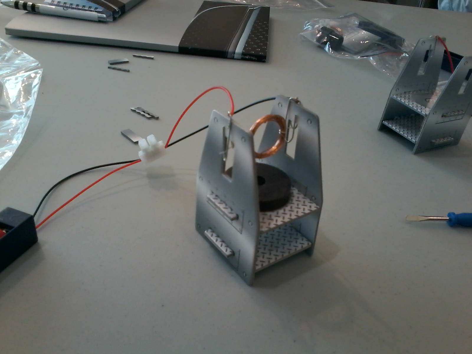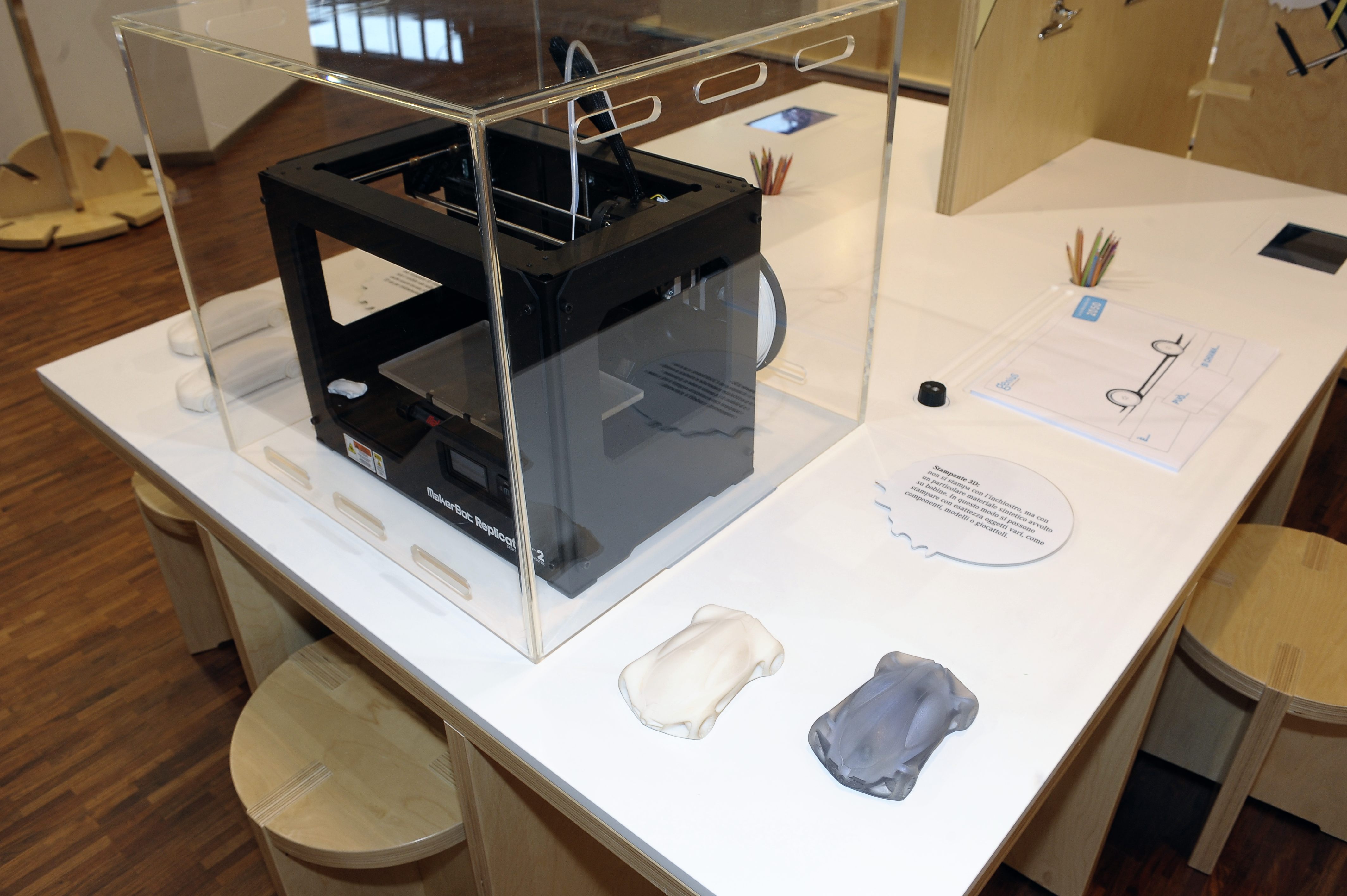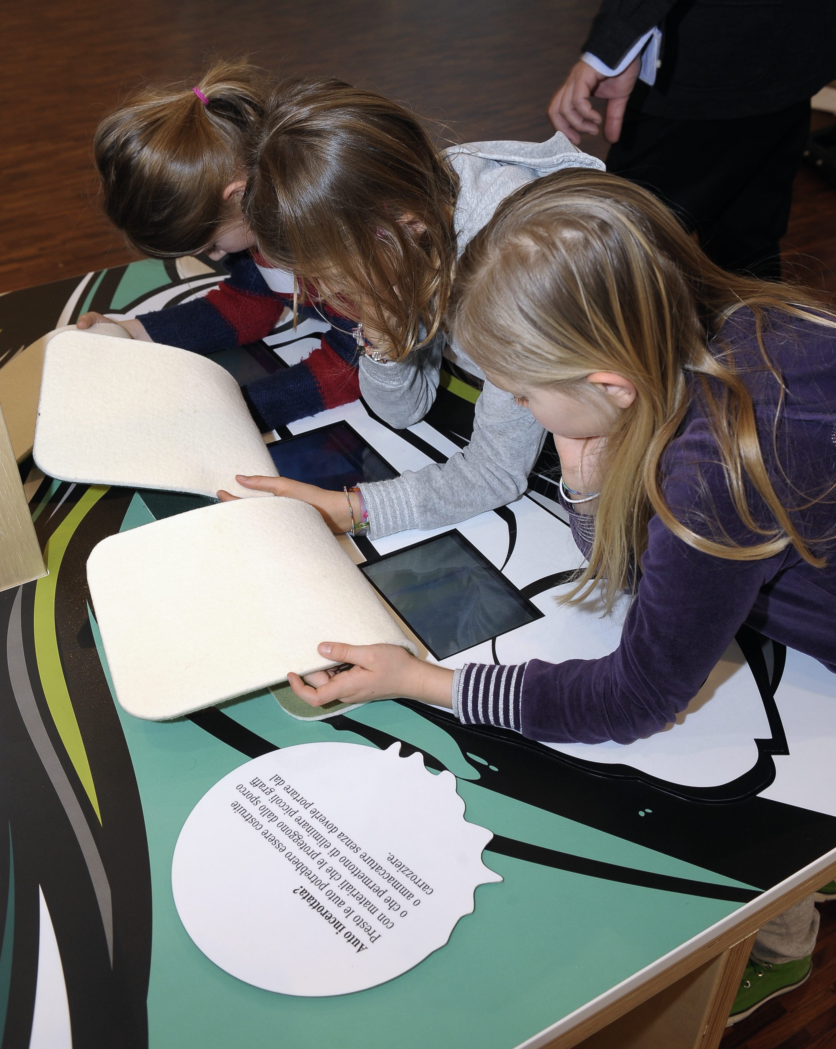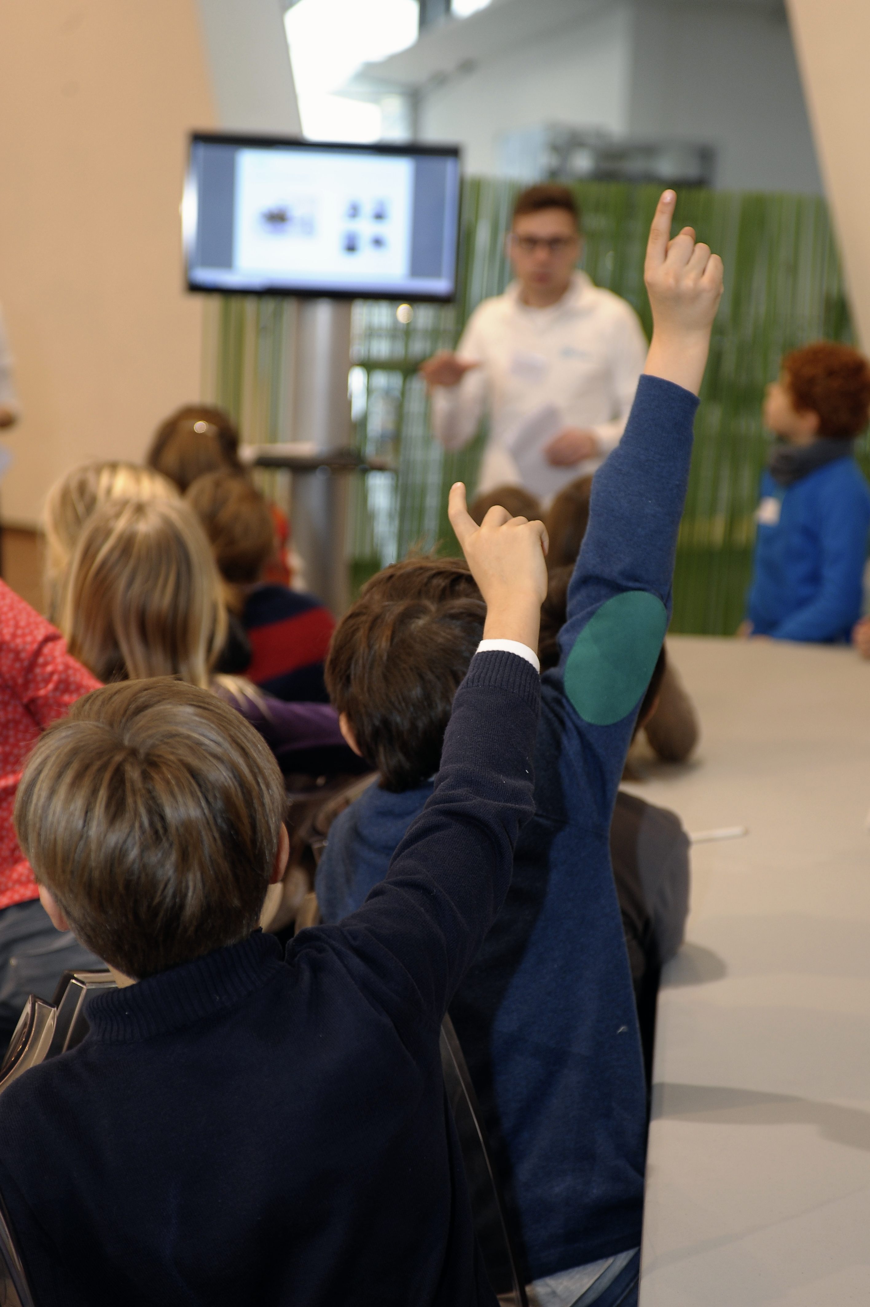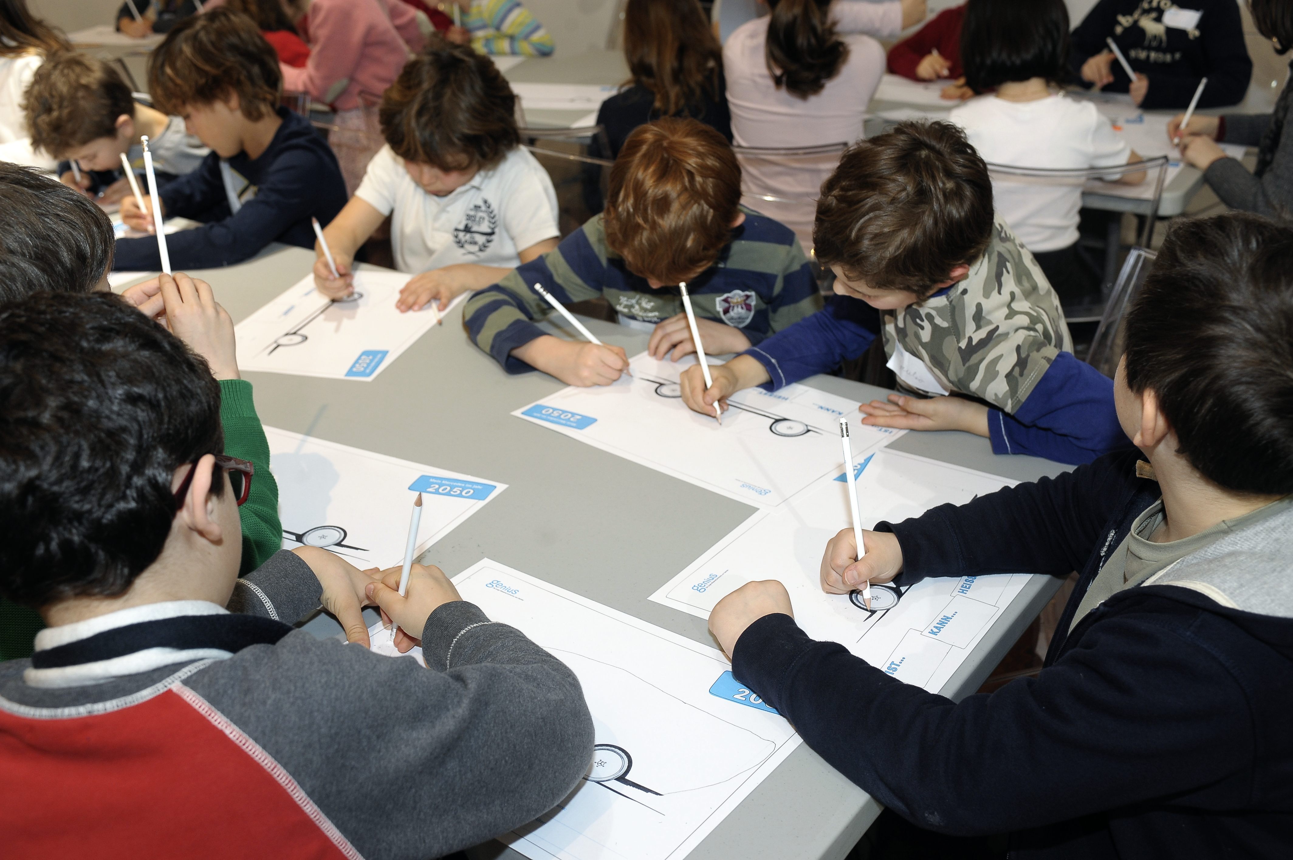 Genius, la giovane knowledge community di Daimler, integra l’esposizione con workshop di argomento tecnico cui le scolaresche prendono parte subito dopo la visita all’esposizione. I giovani visitatori possono così subito mettere in pratica nei workshop le impressioni raccolte durante la visita. Acquisiscono nozioni più dettagliate su una delle aree tematiche e sono coinvolti in prima persona. Così, ad esempio, durante il workshop ‘Elettromobilità’ bambini e ragazzi costruiscono un motore elettrico (l’abbiamo fatto anche noi e, incredibile ma vero, ha funzionato! E la soddisfazione è stata enorme…). I workshop di tipo pratico sono concepiti in funzione della fascia di età di appartenenza: i moduli ‘Design’ e ‘Materiali’ sono rivolti a bambini delle classi dalla prima alla quarta della scuola primaria, mentre i workshop ‘Elettromobilità’ e ‘Guida sicura’ sono rivolti agli allievi delle classi quinte della scuola primaria e delle classi prime della scuola secondaria di primo grado.
