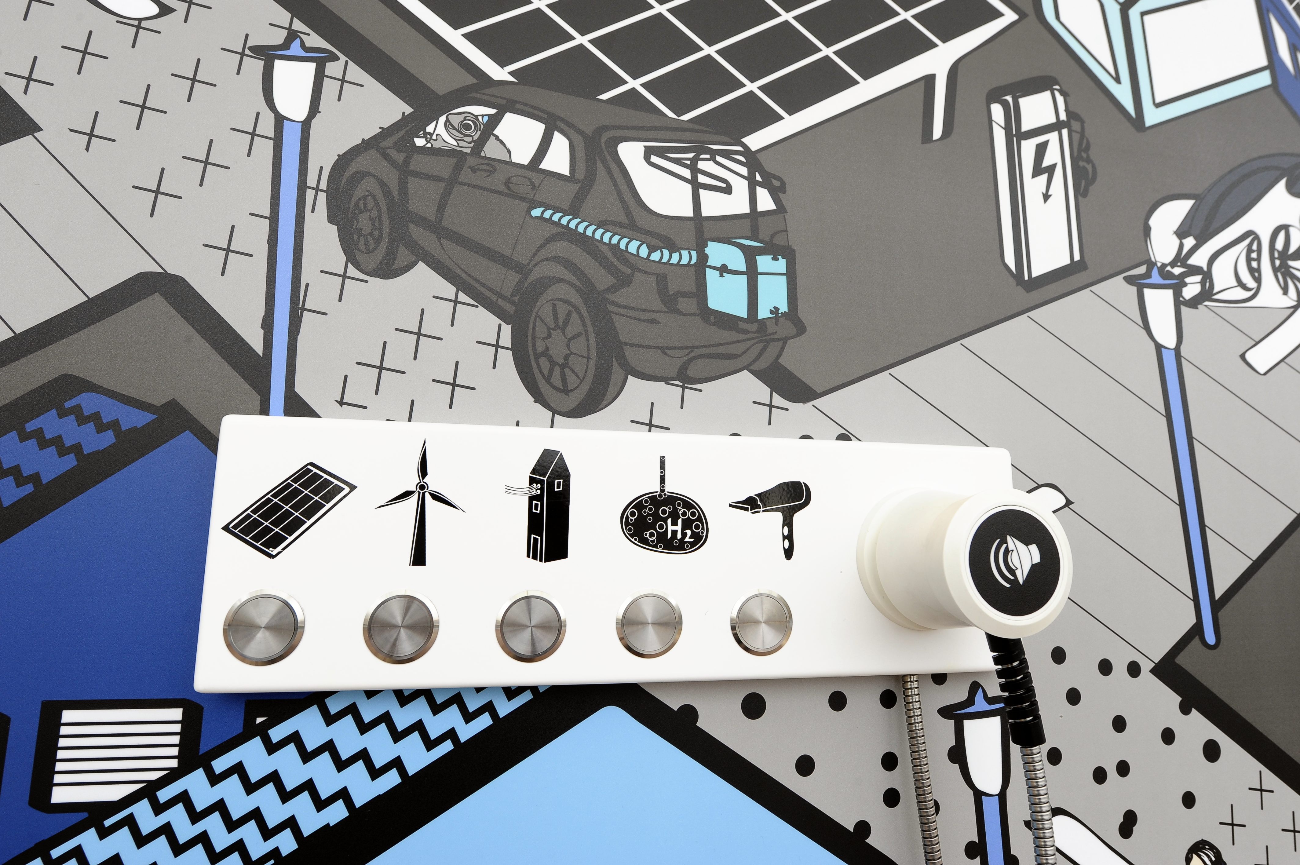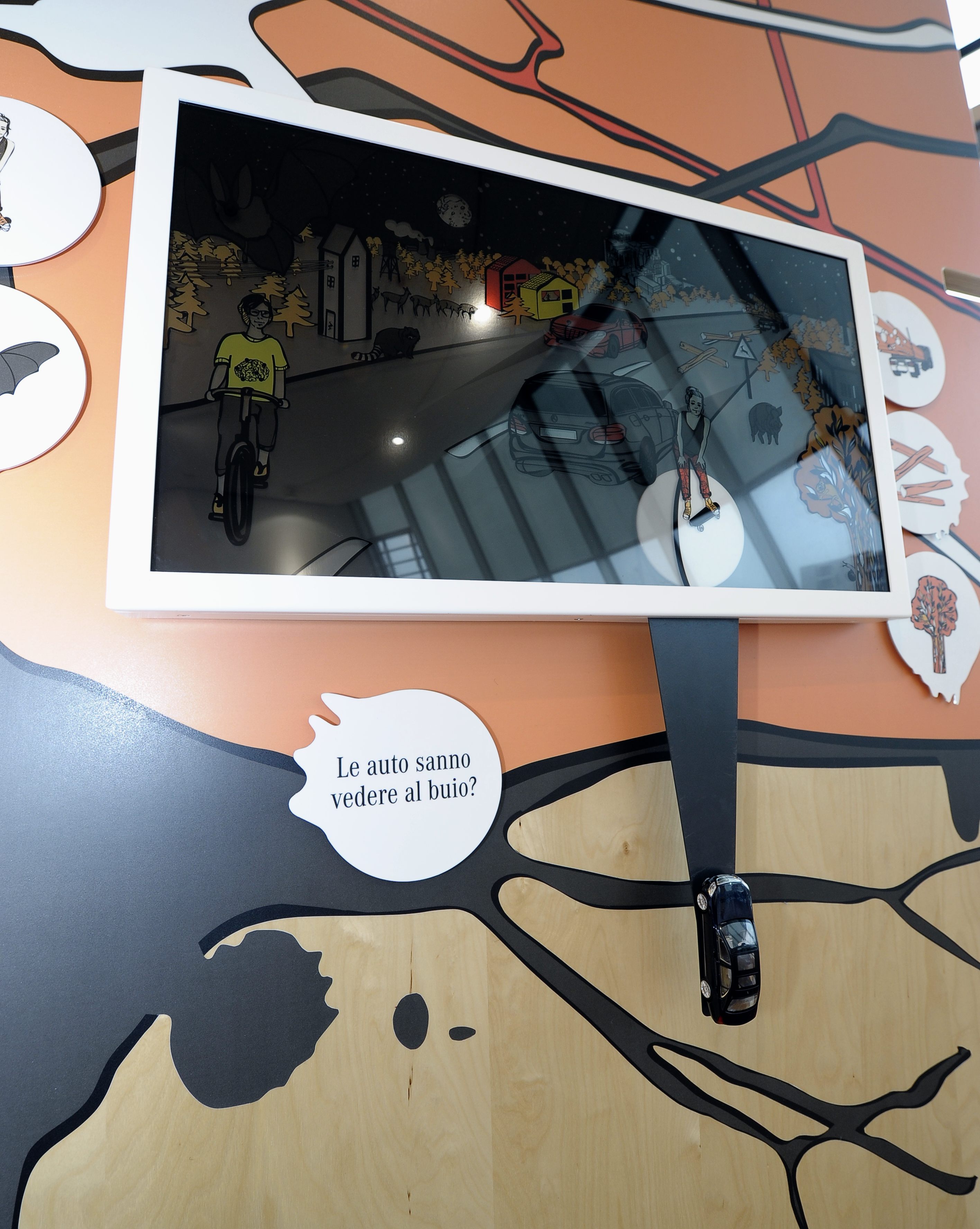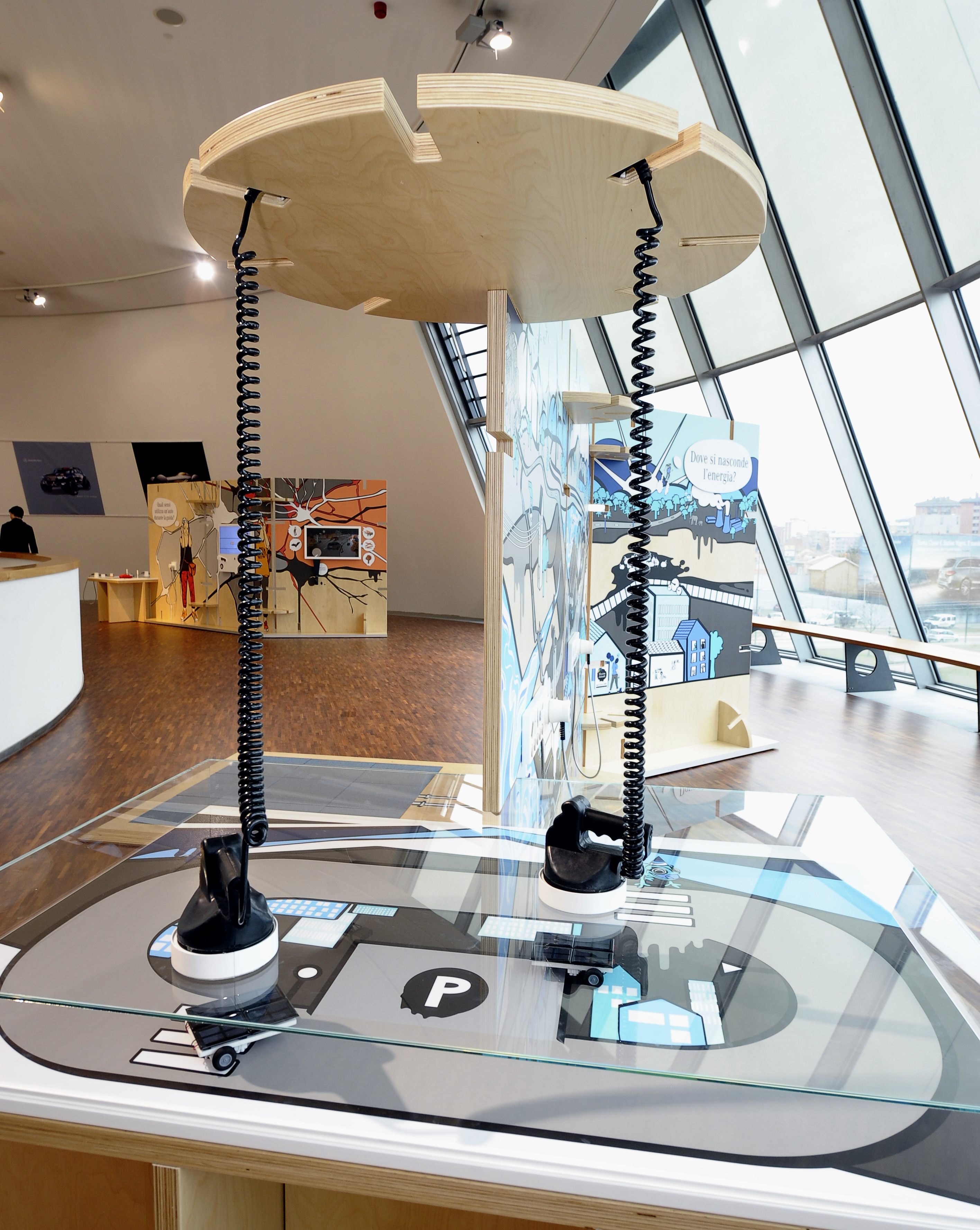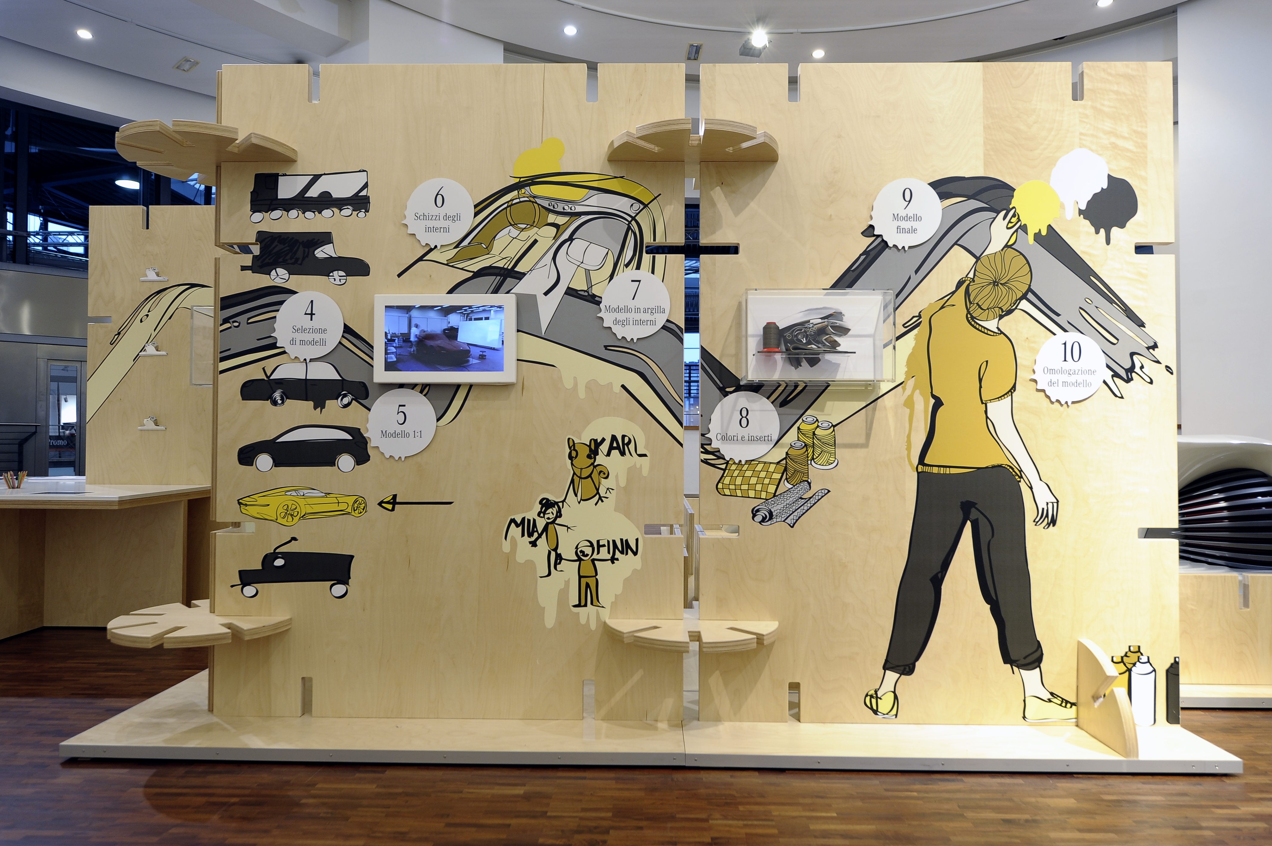 L’esposizione permette a bambini e visitatori di confrontarsi in modalità interattiva con argomenti quali elettromobilità, collegamento in rete, materiali e processo di design delle automobili, con la possibilità di sperimentare dal vivo e imparare divertendosi.