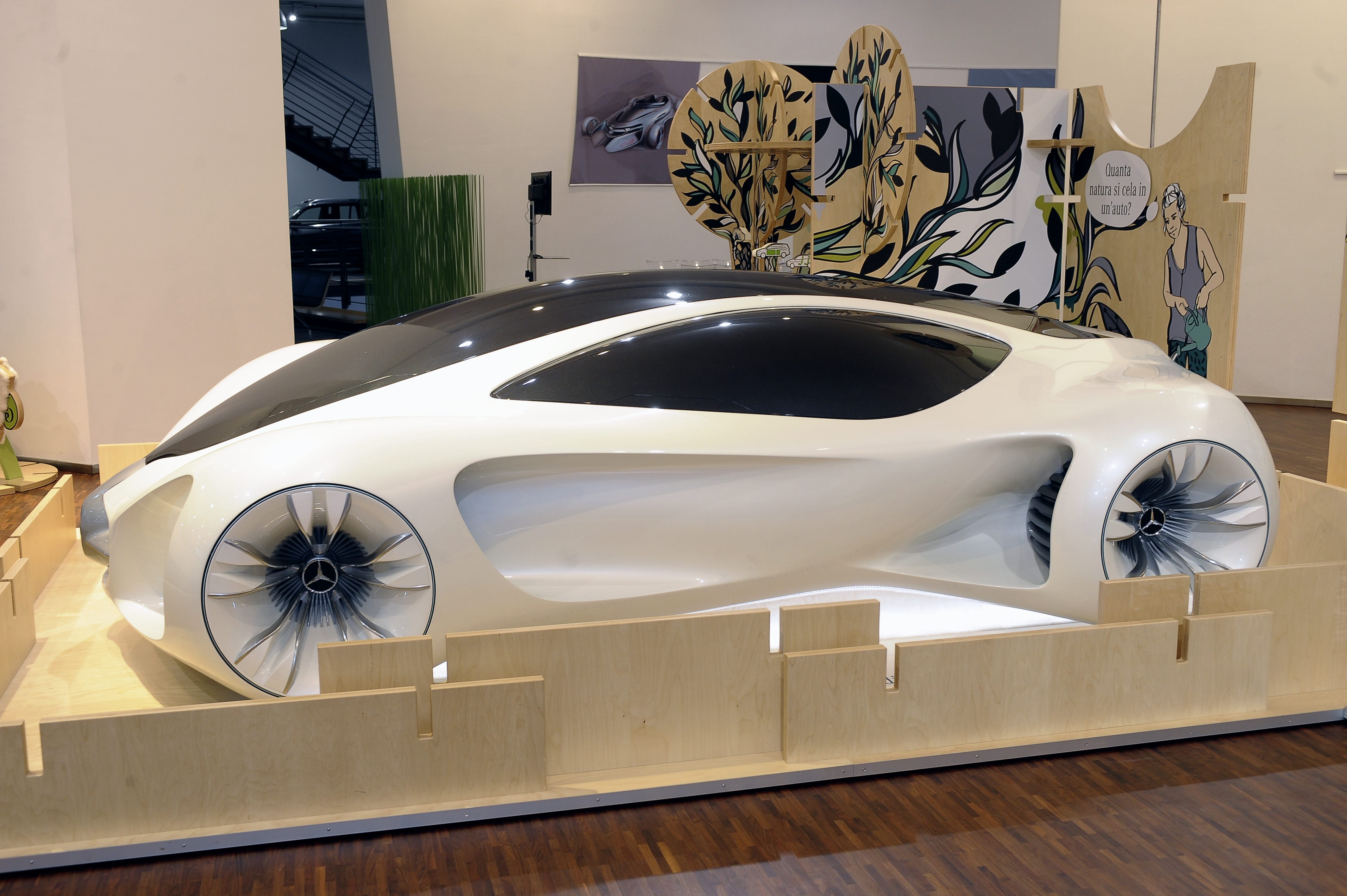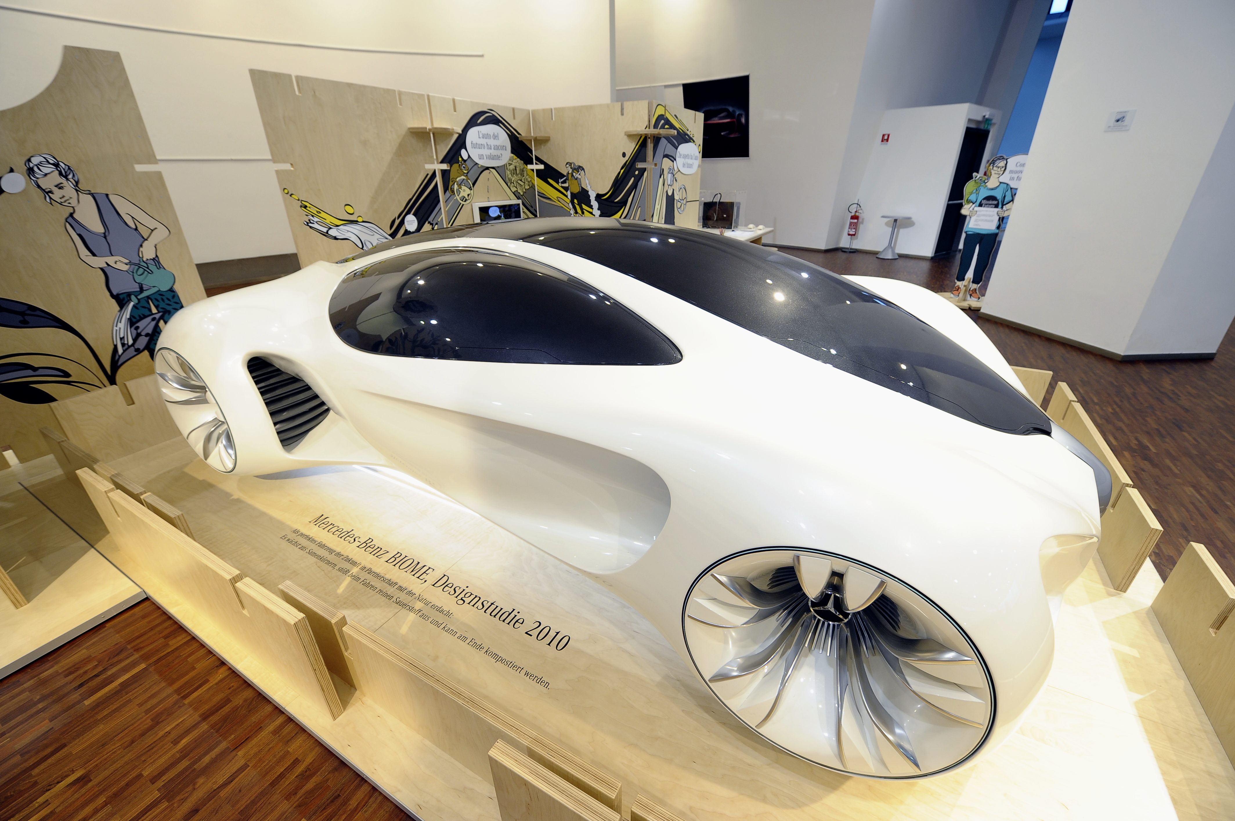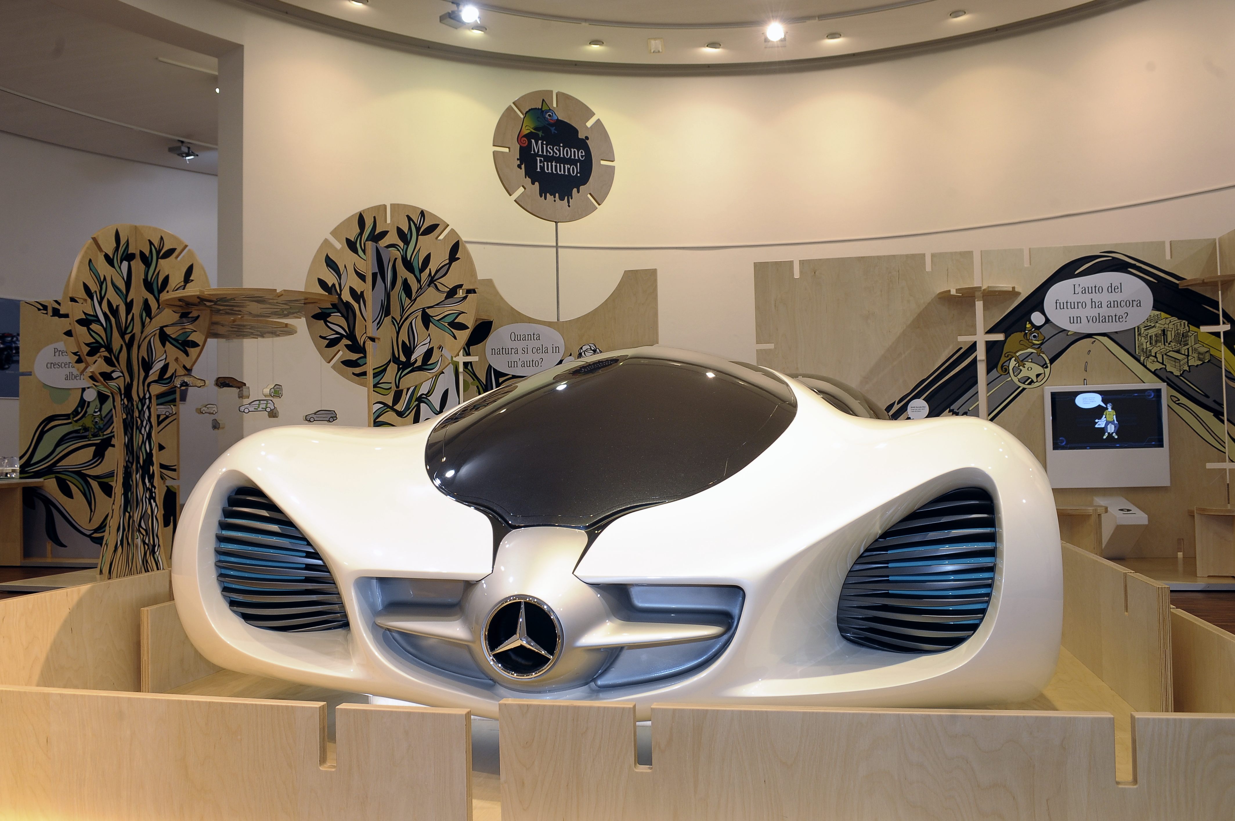 Al centro dell’esposizione un concept rivoluzionario, probabilmente destinato a circolare su strada in futuro: la Mercedes-Benz BIOME. Un prototipo di origine interamente organica, realizzato da semi diversi, completamente ispirato alla natura. Anche se si tratta ancora di ipotesi future, la sezione dedicata alle materie prime rigenerabili illustra quali siano i materiali naturali impiegati già oggi nell’industria automobilistica.