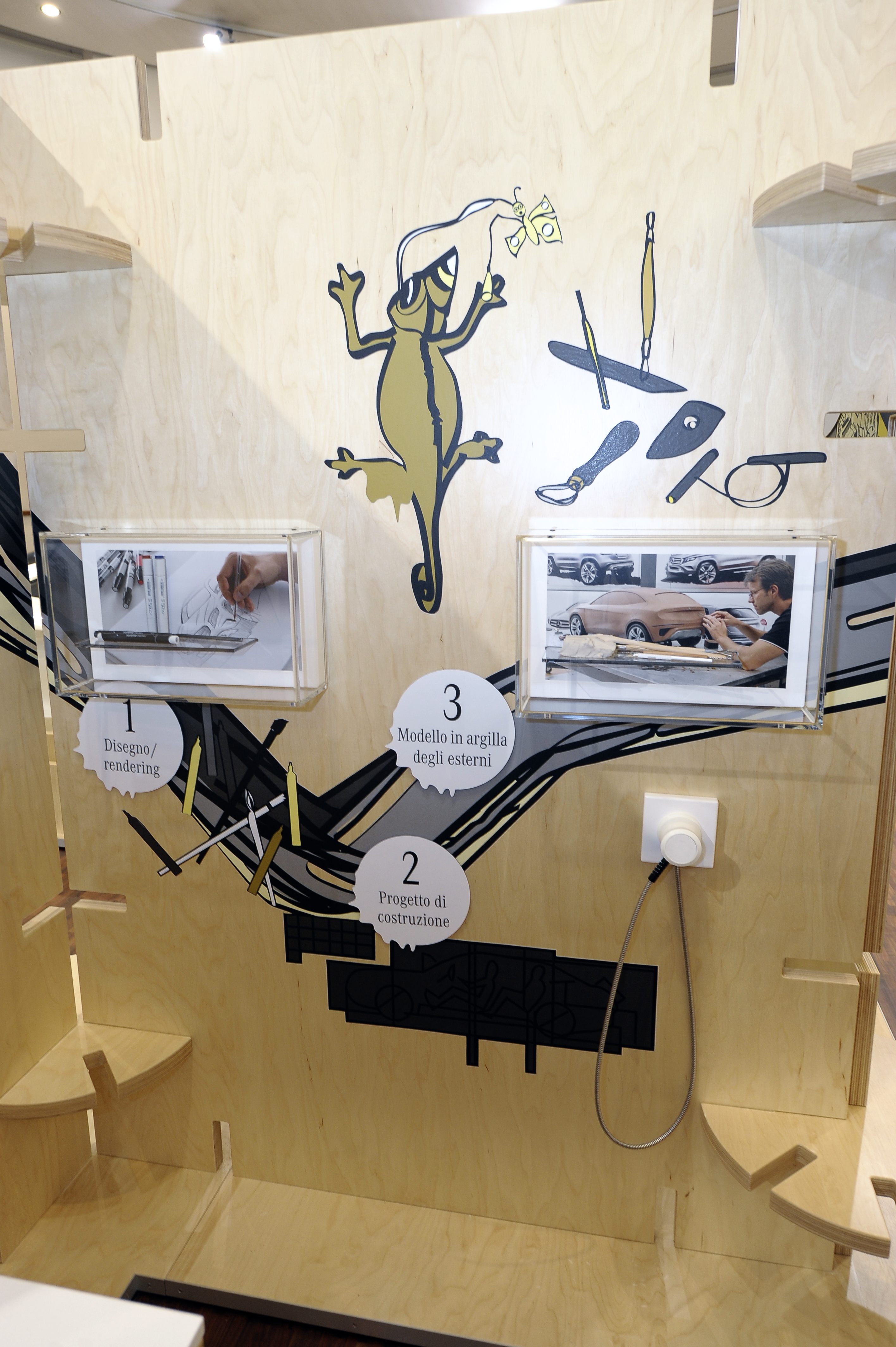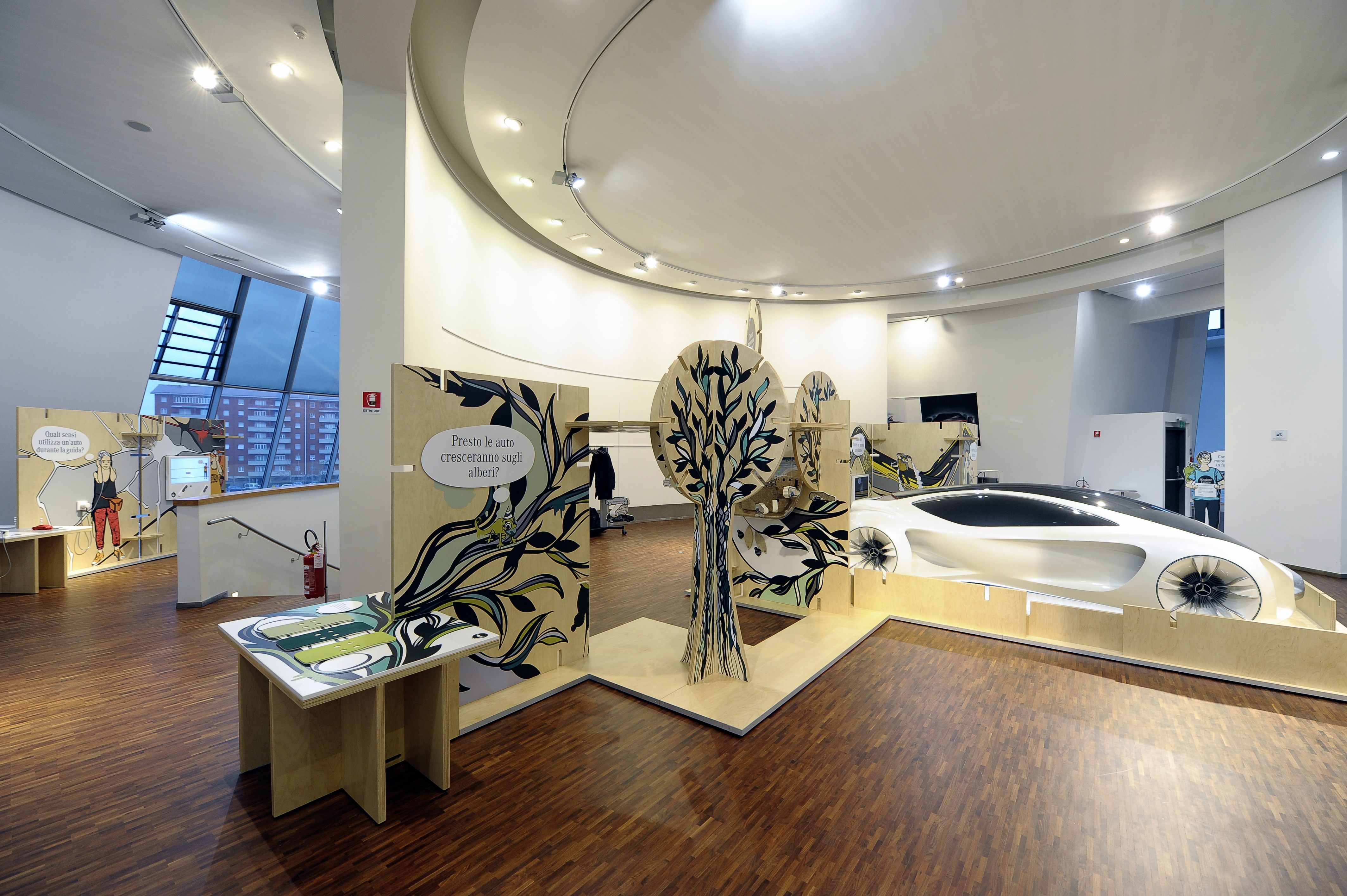 automobili. Nell’area espositiva riservata al design, ci si avvicina alle dieci fasi che portano alla realizzazione di una Mercedes-Benz. I piccoli artisti in erba possono, inoltre, esprimersi in piena libertà con l’album da disegno e con il tablet e gestire così le funzioni dell’abitacolo del futuro avvalendosi soltanto della propria gestualità.