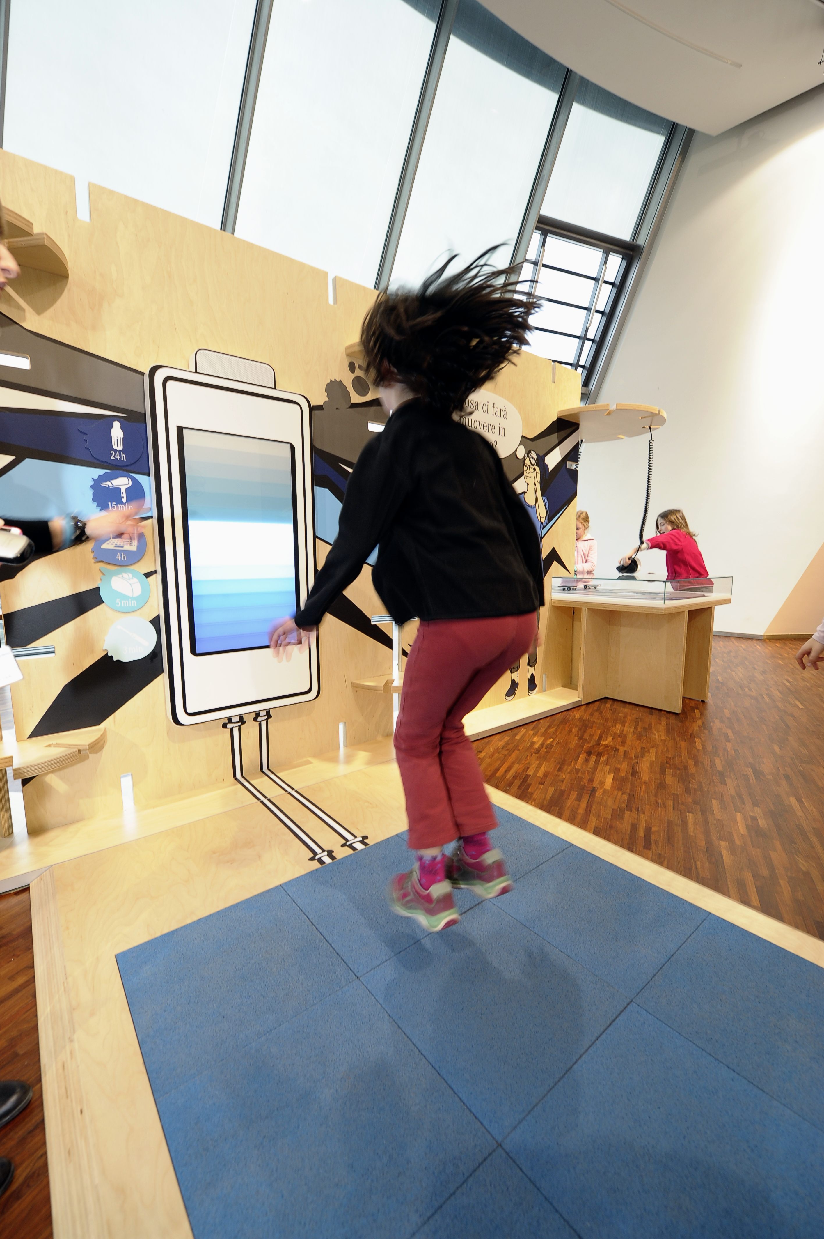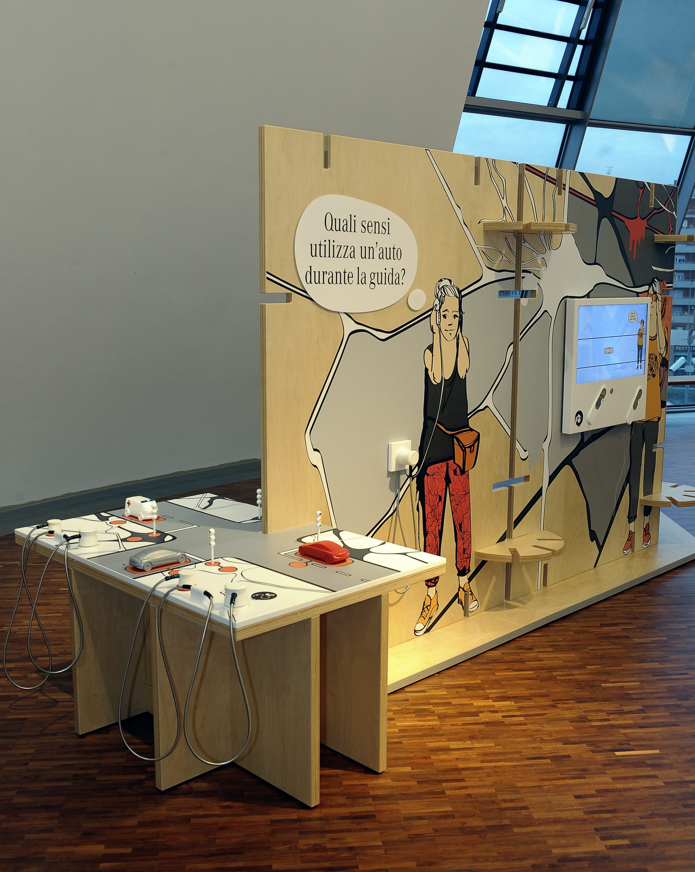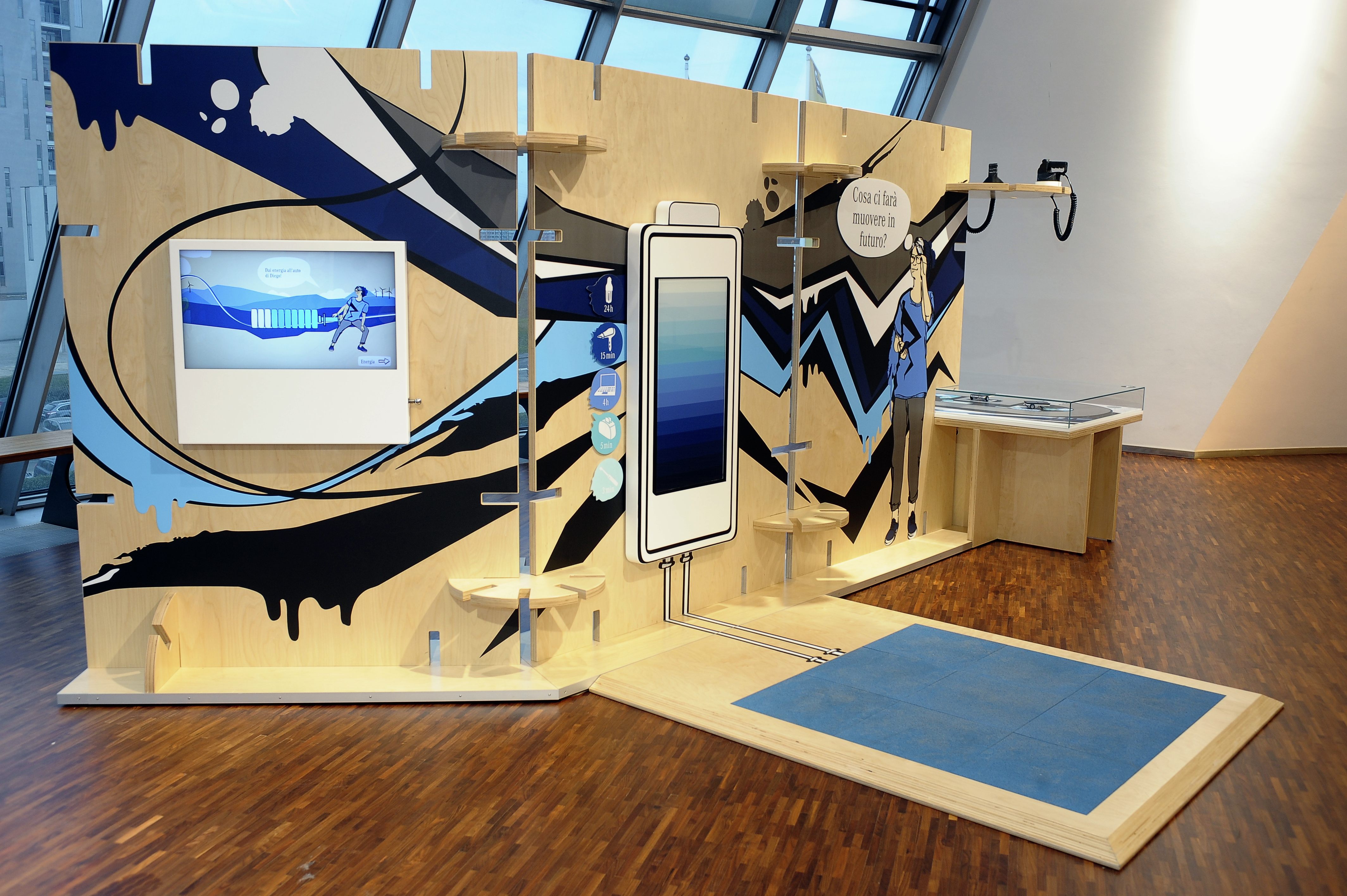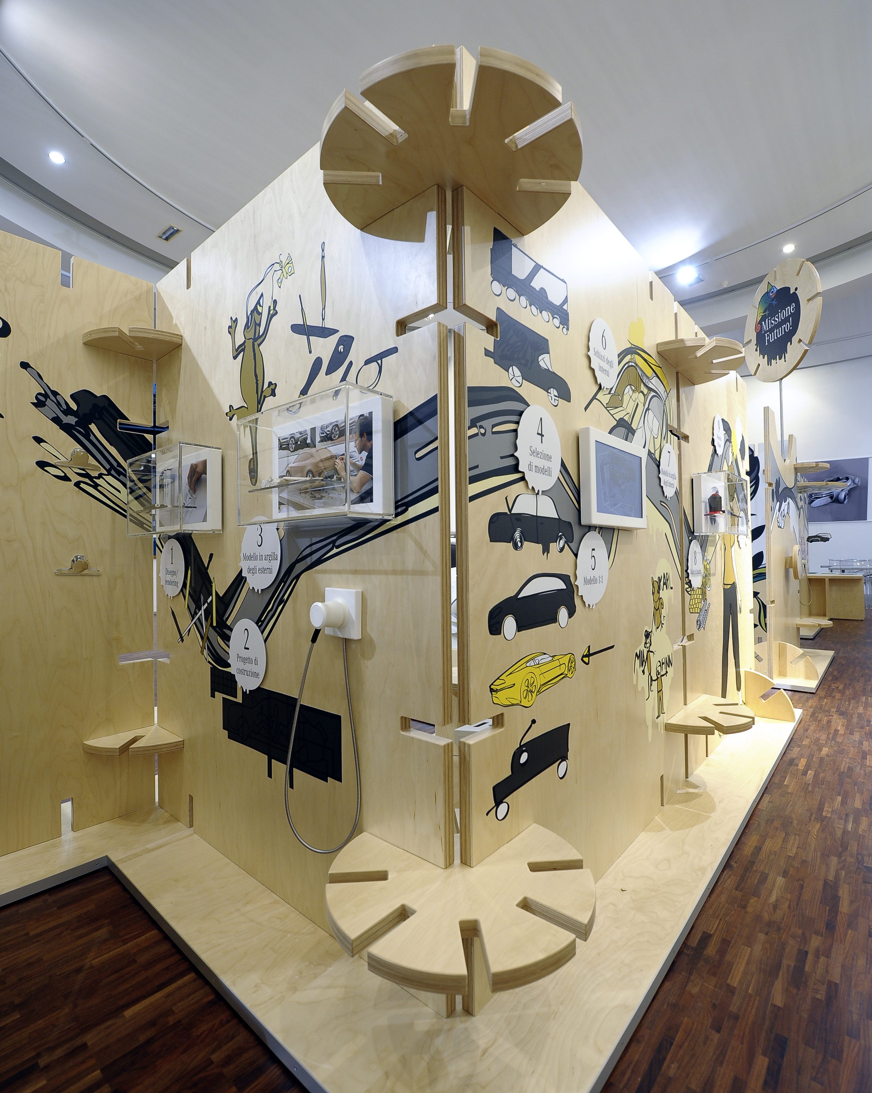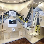 tramezzi ecosostenibili in legno riportano grafici presi in prestito dalla street art. Personaggi carismatici accompagnano i visitatori attraverso i diversi argomenti e gli oggetti esposti. Per trasmettere le informazioni a ogni singolo gruppo vengono utilizzate delle stazioni di ascolto, mentre gli articoli interattivi invitano i bambini a un’esplorazione attiva.