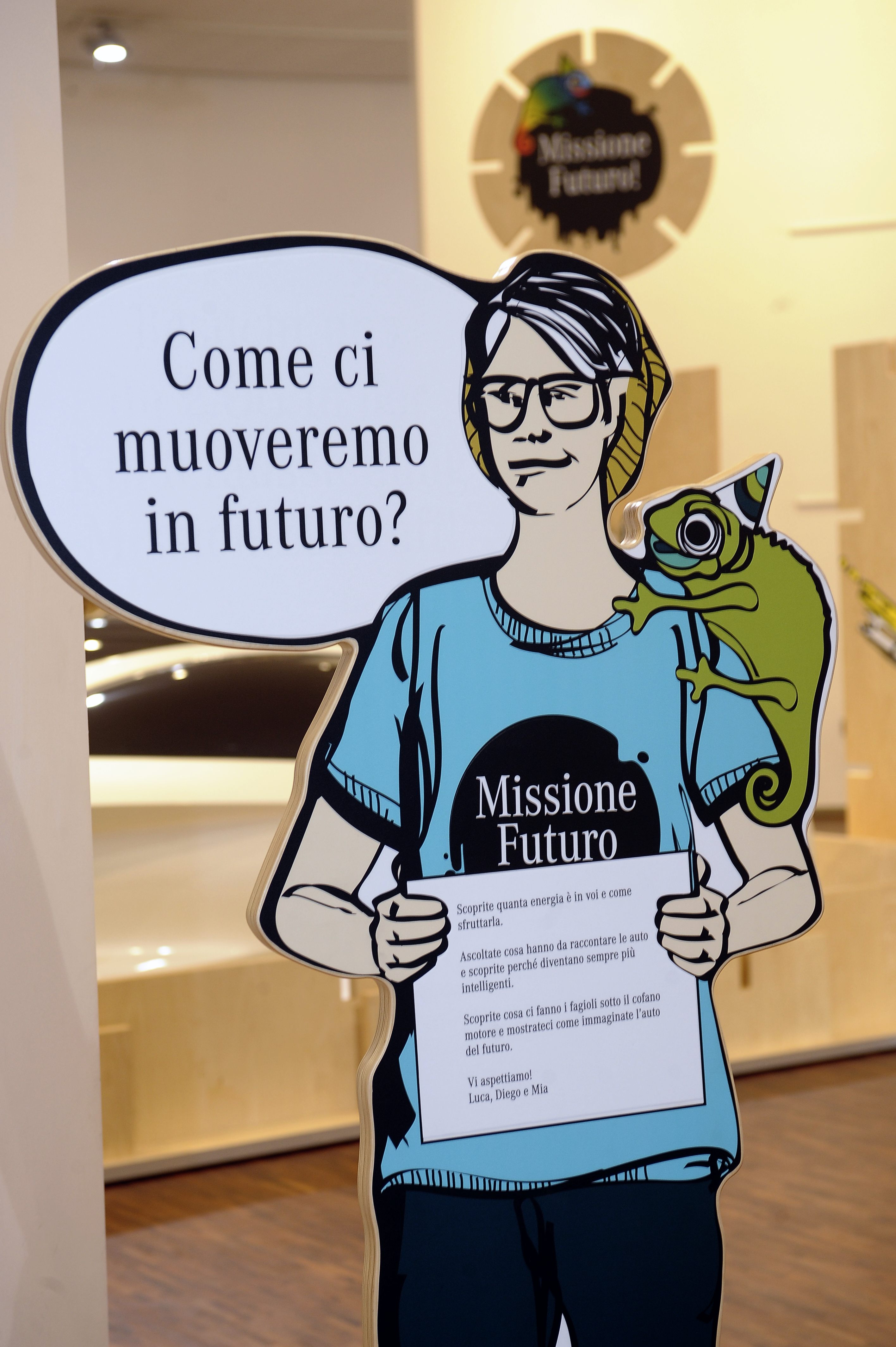 Missione Futuro risveglia la curiosità dei bambini nei confronti della ricerca e permette di sperimentare la mobilità del futuro, le forme di alimentazione e le energie alternative, l’impiego di materie prime rigenerabili nella progettazione di automobili e il collegamento in rete di auto e infrastrutture, proponendo argomenti di stampo scientifico e tecnico, rendendoli divertenti e facilmente comprensibili.