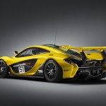 La carreggiata anteriore è stata allargata di 80mm rispetto alla McLaren P1 da strada e, con il suo splitter anteriore più aggressivo, l’auto ha inoltre un’altezza da terra ridotta di 50mm, enfatizzata da cerchi in lega ultraleggeri da competizione da 19” fissati tramite attacchi mono-dado centrali a sgancio rapido e completati da pneumatici Pirelli senza battistrada. Nella parte inferiore della carrozzeria è stata inserita una sottile lamella aerodinamica, come previsto nella versione concept, che consente una migliore gestione del flusso dell’aria lungo le fiancate della vettura.