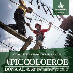 La campagna ruota intorno all’hashtag #piccoloeroe che ribadisce il concetto che un bambino malato è un eroe capace di grandi imprese e l’avventura Dynamo lo aiuterà a diventare ancora più forte. Sul sito ufficiale www.dynamocamp.org chiunque può “metterci la faccia”, raccontando e personalizzando il proprio impegno a