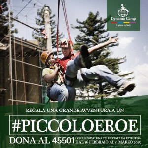 Da lunedì 16 febbraio a lunedì 9 marzo 2015 è attiva la raccolta fondi tramite SMS e chiamate da rete fissa per contribuire a regalare una vacanza gratuita a oltre 600 bambini dai 6 ai 17 anni gravemente malati e ai loro fratelli e sorelle, che nell’estate 2015 trascorreranno una vacanza a Dynamo Camp, il primo camp di Terapia Ricreativa nel nostro Paese appositamente concepito per dare sollievo e speranza a bambini gravemente malati e alle loro famiglie (www.dynamocamp.org).