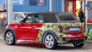 A Mini Convertible John Cooper Works has been seen with almost no disguise on it recently and the latest pictures just show a few swirls on the back and bonnet, so almost completely bare! It can therefore clearly be seen that the