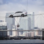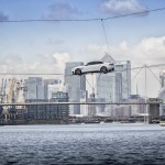 Una spettacolare presentazione ha anticipato il debutto della nuova Jaguar XF al Salone di New York. Nel cuore della City londinese, al Royal Dock di Canary Wharf, la nuova generazione della berlina sportiva Jaguar, guidata dallo stuntman britannico Jim Dowdell, è passata da una riva all’altra del Tamigi, sospesa su due cavi da 34 mm per 240 metri, il più lungo tragitto mai compiuto da un’auto in queste condizioni.