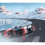 Il tempo accellera, il bolide al suo fianco è pronto per a lanciarsi. I suoni di un vero e proprio motore e dei pneumatici in pista sono registrati e inclusi nella colonna sonora. Gradualmente, le cime delle montagne si ricoprono di neve. Tre Alpine –una blu, una nera e una bianca- sfilano attraverso scenari dipinti a pennellate, che rendono l’effetto della velocità . I piloti e le macchine diventano astratti, si fondono. Diventano parte di un mondo immaginario creato dalla tecnica utilizzata, la pittura animata: «La pittura esprime al meglio la velocità e i movimenti». Il pittore proietta le immagini in 3D su un supporto e dipinge ad olio su una trama in bianco e nero. Ogni quadro viene fotografato e il video montato a colori al computer.
