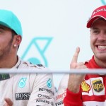 podio e nella conferenza stampa, con l’inglese che mantiene il comando della classifica con 43 punti, con Vettel a 3 punti e Rosberg a 7.