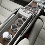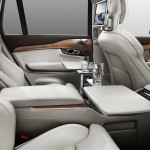 Questo spazio è utilizzato per offrire un’esperienza automobilistica da “prima classe” che inizia con ampi, spaziosi sedili reclinabili posteriori completi di massaggio, di ventilazione e un maggiore spazio per le gambe, così come un touchscreen di controllo a scomparsa, tavolini pieghevoli, un frigorifero con porta bottiglie e bicchieri, un support per sia per raffreddare sia per scaldare bicchiari o tazze e bicchieri di cristallo realizzati a mano dall’azienda svedese Orrefors, leader nel design del vetro.