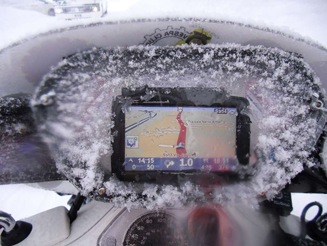Egna/Ora, dove ci siamo trovati all’interno di una bufera di neve, e lì depositata ce n’era davvero tanta. Faceva anche un pò paura superare gli incidenti delle auto, che di ruote ne hanno ben 4, a differenza di noi. E pian pianino abbiamo incontrato anche motociclisti che tornavano indietro come se avessero gettato la spugna.