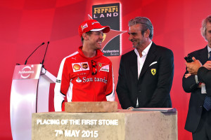 Ma la giornata odierna ha visto anche un altro evento: ci sarà infatti un po’ di Maranello nelle fondamenta di FerrariLand a PortAventura, il primo parco tematico dedicato al Cavallino Rampante in Europa. Con la posa di un mattone proveniente dalla casa di Enzo Ferrari, oggi è stato ufficialmente dato il via alla realizzazione dell’ambizioso progetto che vedrà sorgere un’area dedicata all’interno del resort situato sulla Costa Dorada, a circa un’ora da Barcellona. A presiedere alla cerimonia insieme al Presidente del Governo della Catalogna Artur Mas e al Presidente di PortAventura Resort Arturo Mas-Sardà , il Team Principal della Scuderia Ferrari Maurizio Arrivabene e Sebastian Vettel, che dopo essere giunto al volante di una California T e aver risposto ad alcune domande dedicate in particolare alla prossima gara in programma a Montmelo, è stato autore della vera e propria messa in opera della pietra.