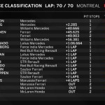 Il GP del Canada è di Lewis Hamilton, che trionfa per la quarta volta sul Circuit Gilles Villeneuve. Il pilota inglese della Mercedes domina dall’inizio alla fine dalla pole position mantenendo a distanza di sicurezza Nico Rosberg lungo tutta la durata della corsa. Rosberg si deve rassegnare alla