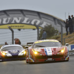 Al via, alle ore 15 di sabato, la battaglia nella classe GTE-Pro era stata subito apertissima, con la Ferrari numero 51 del team AF Corse che, nelle mani di Bruni, era in grado di attaccare l’Aston Martin numero 97 che partiva dalla pole. Le quattro ore successive vedevano le Ferrari affrontare momenti meno facili: la numero 51, con Fisichella al volante, veniva colpita dal prototipo Audi numero 8 alla ripartenza dopo una bandiera gialla. La 458 Italia subiva una foratura alla posteriore destra e danni alla fiancata che facevano perdere minuti preziosi. Nel contempo la vettura 71 si ritrovava a perdere tre giri a causa della sostituzione del motorino d’avviamento.