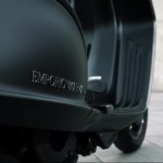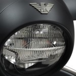 La scritta Emporio Armani è posta sulla fiancata, mentre l’iconico logo con l’aquila è posizionato sopra il faro anteriore. Lo scooter è dotato di monoblocchi di alluminio, finiture brown leather, accessori high end, gestione elettronica a supporto della guida oltre a un motore quattro tempi, a iniezione elettronica, di ultima generazione, dai consumi ridotti.