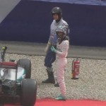 uscito all’ultima curva, dovendosi quindi accontentare del secondo posto, davanti alla Ferrari di Sebastian Vettel, che ha migliorato nell’ultimo run, chiudendo a 0.155s da Rosberg. Che, va detto, non ha preso benissimo il suo errore, preferendo fare una bella scarpinata fino ai box per smaltire il nervosismo, rifiutando persino un passaggio dalla medical car.