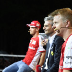 l’entusiasmo di tutti i partecipanti. Compresi i piloti. Una volta conclusa la diretta di Sky TV Sebastian, Kimi, Esteban e Marc hanno fatto crowdsurfing. Scendendo dal palco e rimanendo a lungo con i tifosi, a stringere mani e firmare autografi. Un’ora prima, Maurizio Arrivabene aveva aperto lo spettacolo per poi congedarsi con la frase “noi vi abbiamo qui” e la mano sul cuore.
