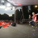 Meet and Greet non è un incontro “classico”, ma l’occasione, per il pubblico ferrarista, per sentire più vicini i protagonisti della F1. Più vicini in tutti i sensi, perché le domande poste dal pubblico spaziavano dai gusti gastronomici (pizza per Kimi, carbonara per Seb) alle piste preferite, per finire alle… fidanzate. Il tutto in una cornice favolosa, tra la Villa appena restaurata e il Parco. Da ripetere, assolutamente.