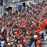 Il bagno di folla della sessione autografi, una marea di gente, una marea quasi tutta rossa. E un Kimi stakanovista della firma, che non si risparmia, riesce a tenere un ritmo pazzesco e sorride, sorride molto più spesso di quanto molti non credano. Si scrive, si impacchetta, si torna al parcheggio e verso casa. Sì, sono proprio 23 le rotonde. Stanchezza? Non si sente, è la magia di Monza…