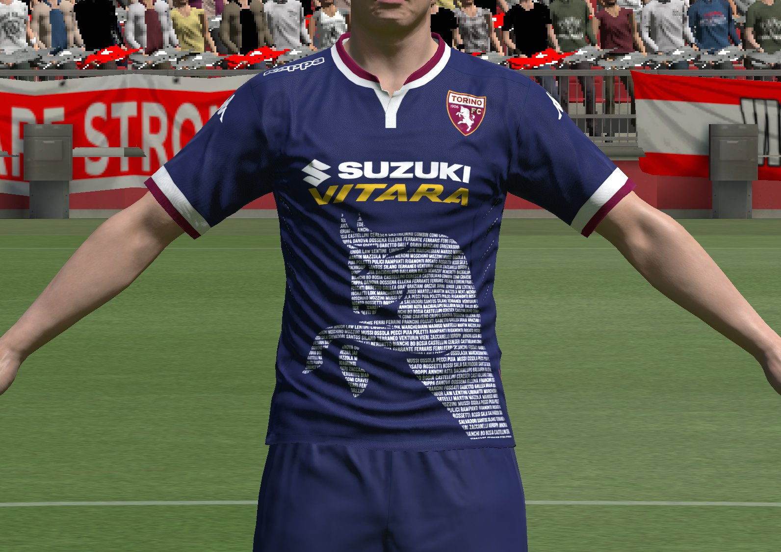 Le caratteristiche di eccellenza delle due realtà diventano tangibili anche grazie alla cura di ogni dettaglio, tanto nella produzione dei modelli Suzuki quanto nella gestione dell’attività sportiva della Squadra. Il logo Vitara, ben visibile sull’abbigliamento tecnico, trova spazio su tutti i completi ufficiali del Toro, da quello classico su base granata con finiture bianche per le partite giocate all’Olimpico fino alla versione su base bianca con finiture granata pensata per le trasferte. La novità 2016 è rappresentata dalla “3° maglia”, in blu con finiture in bianco e granata per colletto e bordo delle maniche. Questo inedito abbigliamento si contraddistingue per la sagoma del toro rampante formata dai cognomi dei calciatori che hanno scritto le pagine più belle della storia della Squadra. Una maglia dallo stile elegante e ricercato, non a caso giudicata dalla testata sportiva irlandese Balls.ie “la più sexy dell’intero panorama calcistico europeo”. Un riconoscimento che rende omaggio ad un riuscito abbinamento di colori, grafica e finiture che si sposa perfettamente con il logo ed il carattere esclusivo di Suzuki VITARA.
