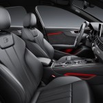 media-A159030_mediumI sedili sportivi S sono rivestiti in una combinazione di pelle Nappa perla e Alcantara nei colori soul, grigio rotore e rosso magma. Hanno fianchetti regolabili, poggiatesta integrati e funzione pneumatica di massaggio. Come è tipico dei modelli S, il nero è il colore dell’abitacolo dominante. Gli inserti decorativi di serie sono in alluminio opaco spazzolato. Completano la raffinata dotazione dettagli come i listelli battitacco con logo S4 illuminato, i motivi goffrati sui sedili o la schermata speciale di benvenuto.