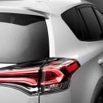Il frontale del Nuovo RAV4 rispecchia l’evoluzione dell’indirizzo stilistico Toyota Under Priority e Keen Look, con il logo Toyota che spicca all’interno di una griglia superiore dalla forma slanciata che si integra con i nuovi gruppi ottici Bi-LED. Le estremità della griglia centrale e inferiore, più ampie rispetto al passato, si uniscono creando gli alloggiamenti dei fendinebbia, ben incassati nei bordi del paraurti per enfatizzare la solidità della vettura. La fiancata è ben delineata con un nuovo disegno della fascia laterale e degli archi passaruota che sottolineano sia l’eleganza che la potenza del Nuovo RAV4, impreziosito da nuovi cerchi da 17″ e da 18″ e dalla nuova antenna “Shark”. La gamma colori si arricchisce e aggiunge 2 nuovi metallizzati: uno sportivo Blue Met ed un elegante Dark Red Met.